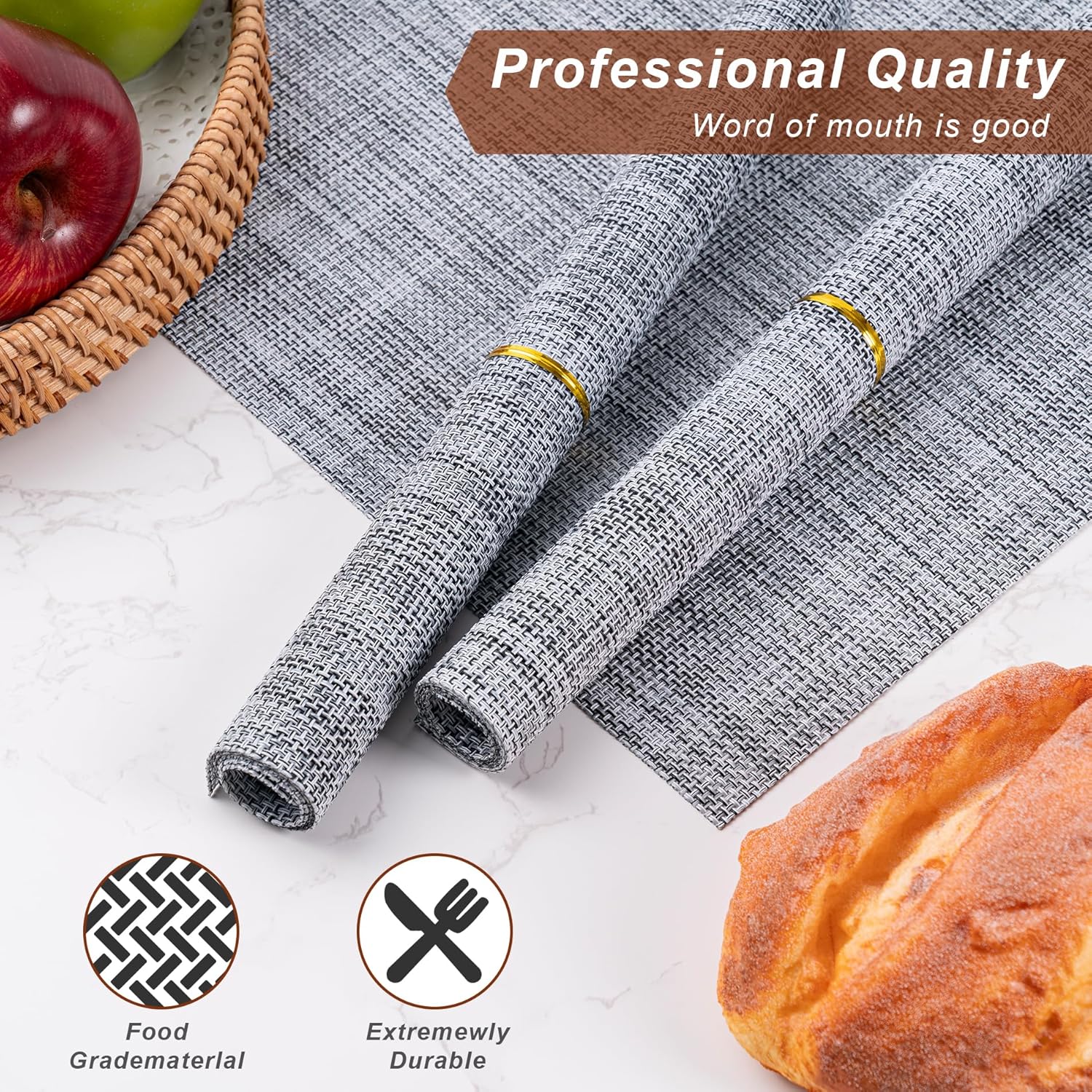 • Protect Your Table:Our placemats protect your table from scratches and spills while adding style. Heat-resistant up to 176°F (80°C), they also keep your food warm. With high-quality woven vinyl construction, they resist stains and water for daily use. Elevate your dining experience with these elegant and durable mats.