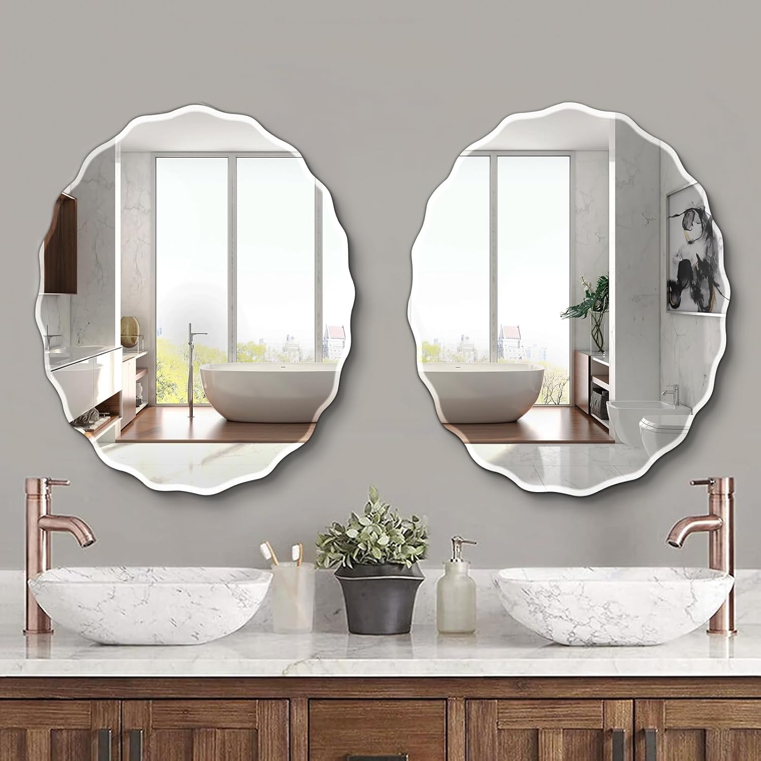 • 【Stylish Design】Frameless design combines with beveled edge gives the oval wall mirror a sleek and contemporary look. Polished edges ensure safety and a refined appearance. It's not only a practical reflection tool, but also an ideal wall decor mirror, adds a touch of sophistication to any room decor.