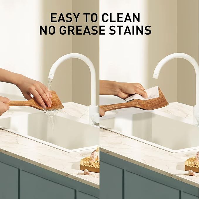 • Easy to Clean and Store: The surfaces of all our utensils are smooth without burrs so they won’t damage your cookware. Cleaning is easy with warm water or soapy water. Each tool has holes in the handle allowing it to be hung up on any standard-sized cutlery rack when not being used - providing convenient storage options for busy kitchens that are also stylish!