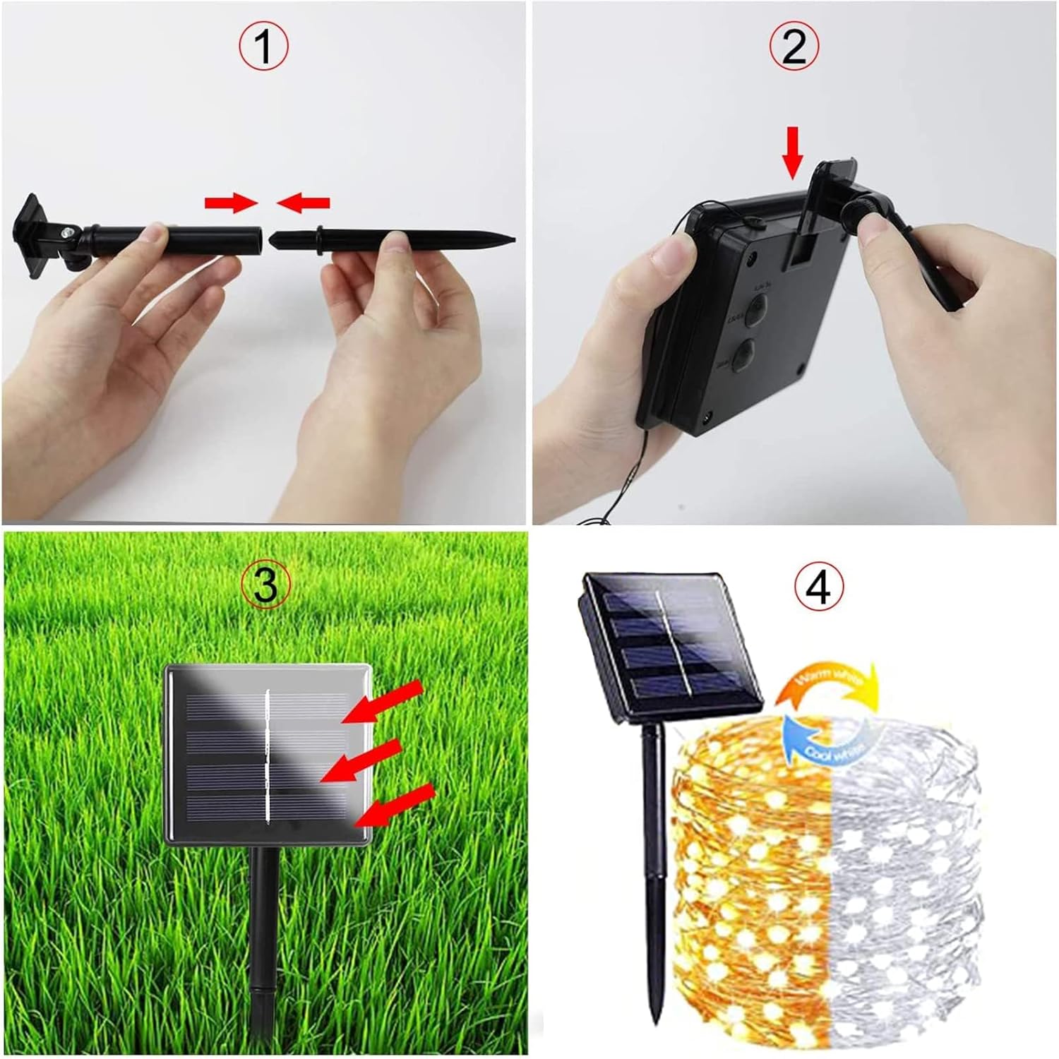 • Upgraded 2 Pack Super Bright Solar Christmas Lights: Cute shaped, powerful 1800mAh Capacity Battery, Super Bright Total 200 LED 80FT, Upgraded Larger LED Beads, IP65 Waterproof Performance. Durable Flexible Copper Wire, Quick Charging Technology, Color Temperature Switchable (Warm White / Cool White), Romantic Christmas Decorations. Solar string lights outdoor waterproof will be a great choice.