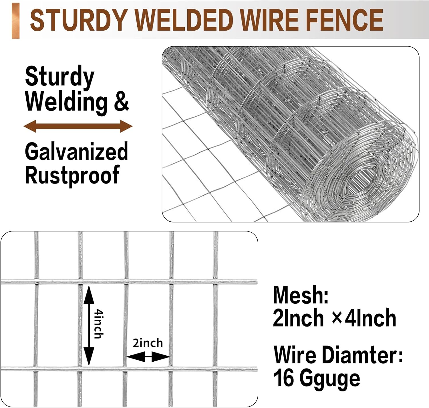 • Sturdy Welded Wire Fence: This welded wire fence manufactured using advanced welding technology to ensure that each solder joint is strong and durable,features a 16GA wire diameter, with 2 inch x 4 inch mesh openings, sturdy enough to effectively protect your yard and poultry safety.
