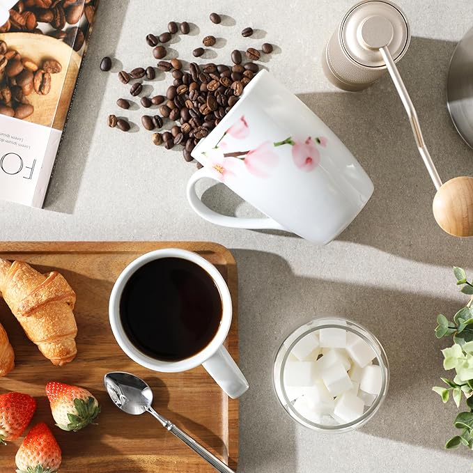 • ELEGANT MUG DESIGN: Embrace modern sophistication with our pristine white mugs adorned with pink floral. Elevate your sipping experience