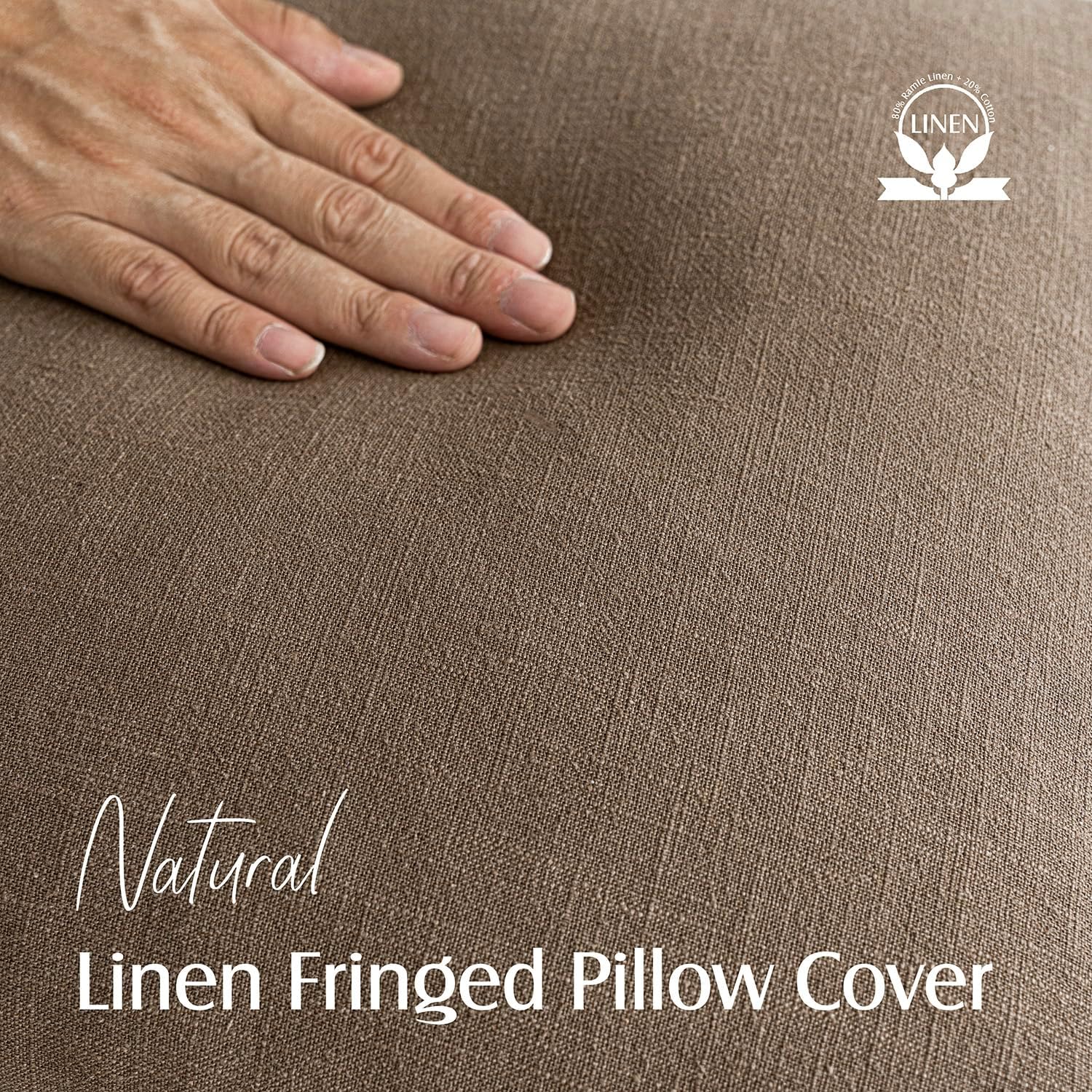 Foindtower Set of 2 Decorative Linen Fringe Throw Pillow Covers Cozy Boho Farmhouse Cushion Cover with Tassels Soft Accent Pillowcase for Couch Sofa Bed Living Room Home Decor, 24×24 Inch, Light Brown