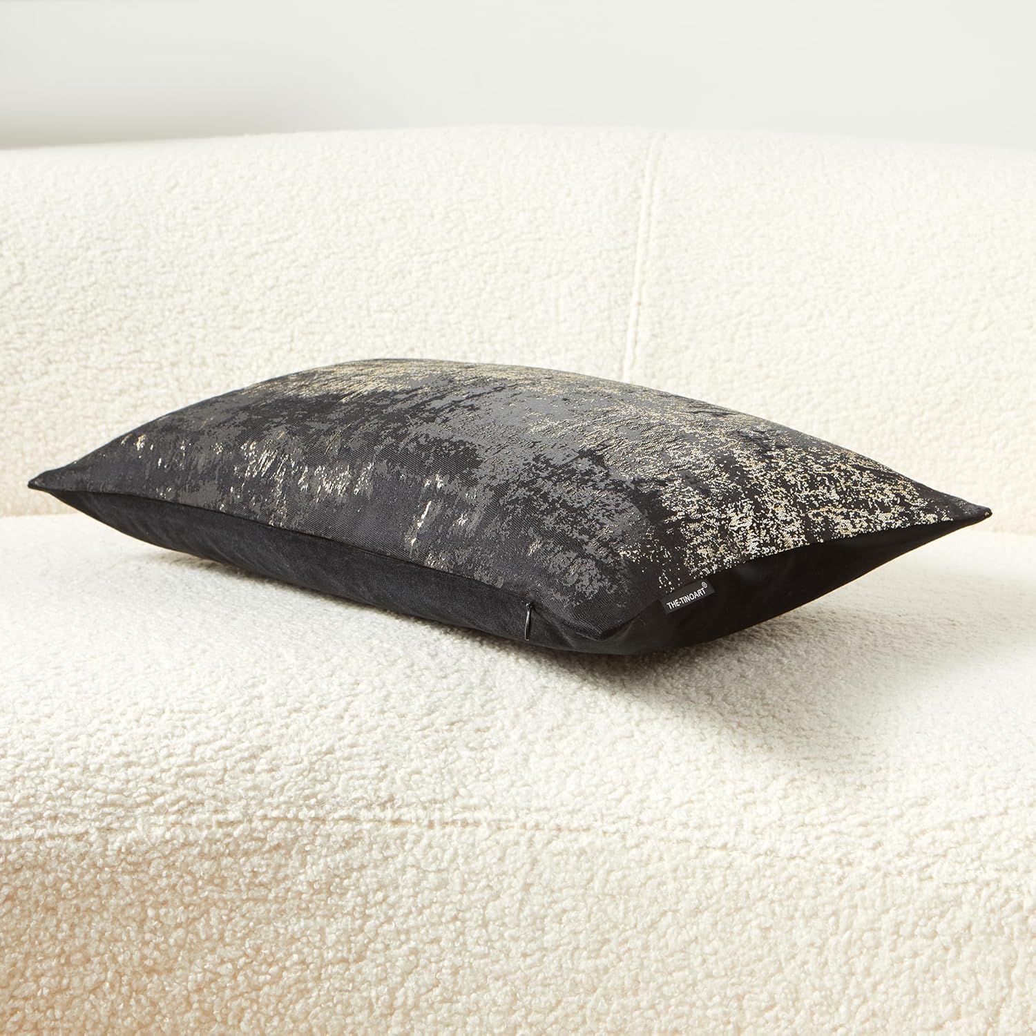 THE-TINOART Black & Gold Modern Luxury Pillow Cover 12x20 - Jacquard Embroidery with Metallic Thread, Reversible Decorative Throw Pillow Cover for Sofa/Bed, Velvet Backing
