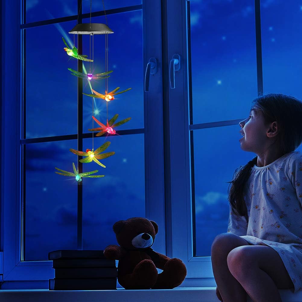 • 【Solar Powered Wind Chimes】 Featuring a unique design with 6 dragonfly shaped lights charge automatically in the daytime and light up at night, free your hands, new version solar panel absorbs energy quickly, the solar Christmas lights can last up to 8-10 hours after fully charged.(Christmas Lights, Christmas Decorations, Gift for Mom, Gifts for Grandma, Mom Gift, Grandma Gift, Birthday Gift for Mom, Birthday Gift for Grandma)