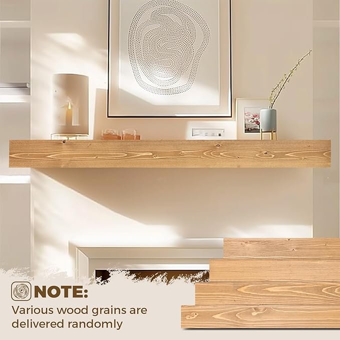 • Easy Installation: Our solid wood mantels come with hidden wood brackets, which can be easily fixed to the wall. Our hollow structure design ensures easy installation. The package includes installation instructions and two sets of accessories, compatible with hollow walls (drywalls) and solid walls (brick walls). For any installation issues, feel free to contact us at any time