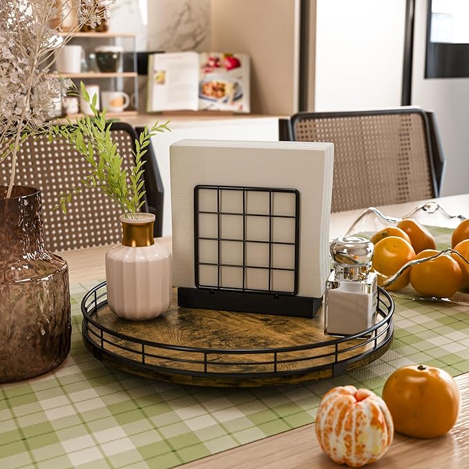 • Wide Application - The lazy susan organizer adopts handmade craftsmanship. Its MDF material is strong and long-lasting, not easy to wear and has no odor. The surface has exquisite texture, creating a unique rustic style