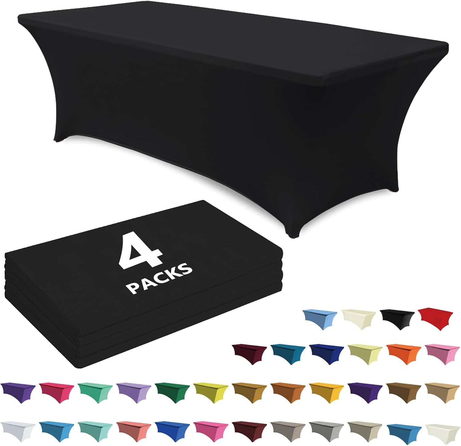 ABCCANOPY 4 Pack 6 FT Black Spandex Table Cover Stretch Fitted Wrinkle Resistant Tablecloth Reuse for Rectangular Folding Table Patry Event Wedding Banquet Protector