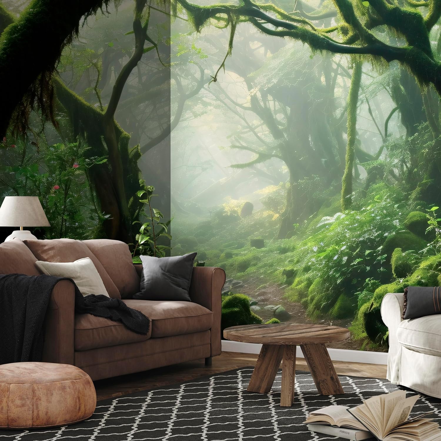 artgeist Wall Mural Peel and Stick Forest 212x98 in - XXL Self-Adhesive Corner Wallpaper Removable Large Sticker Foil Angle Wallpaper Trees Forest Moss Mystery c-B-10183-a-a