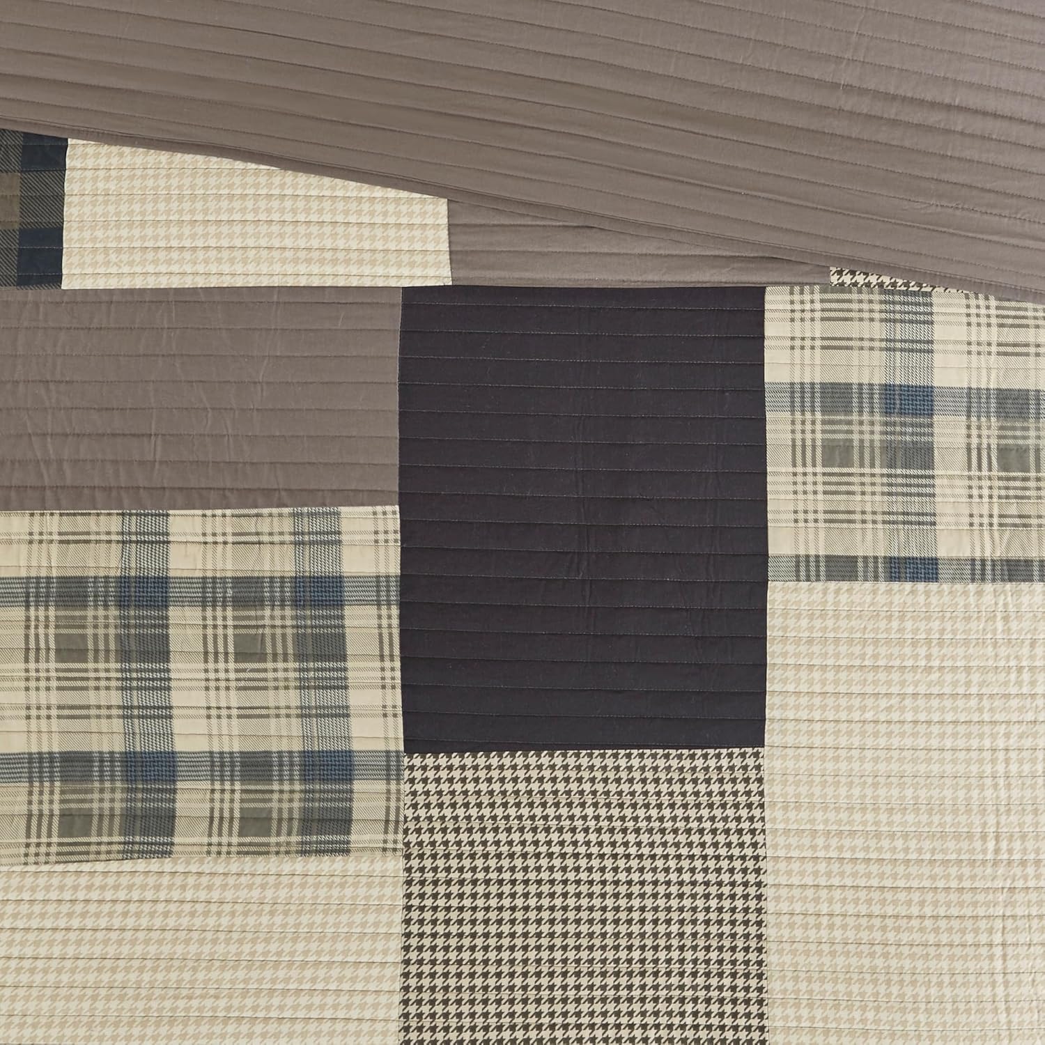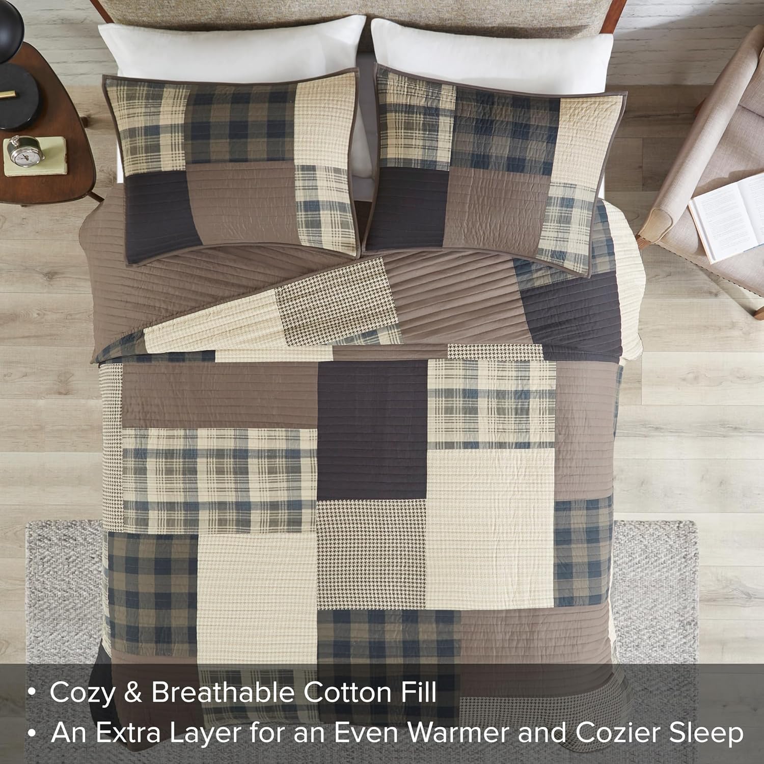 Woolrich Quilt Set Patchwork Channel Quilting, Cottege Coverlet for Twin Size Bed All Seasons, Lightweight Prewashed Cotton Coverlet Bedspread, Shams, Winter Hills, Oversized Twin/Twin XL Tan 2 Piece