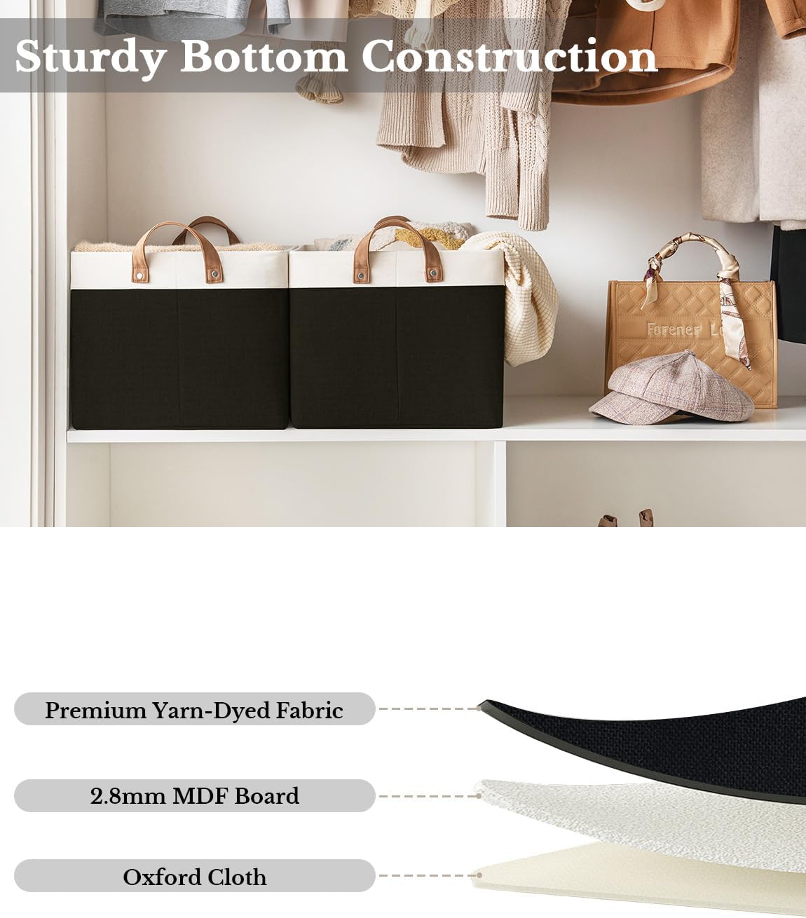 StorageWorks Storage Bins, Fabric Storage Bins for Shelves, Extra Large Storage Baskets with Metal Frame, Closet Baskets and Bins with Handles, Jumbo, Black and White, 2-Pack