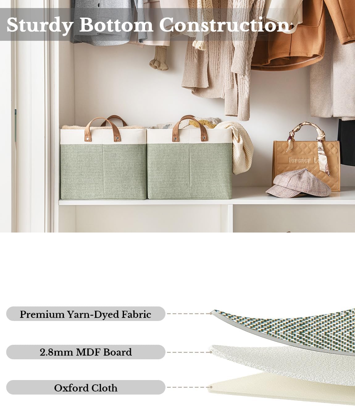 StorageWorks Storage Bins, Fabric Storage Bins for Shelves, Extra Large Storage Baskets with Metal Frame, Closet Baskets and Bins with Handles, Jumbo, Green and White, 2-Pack