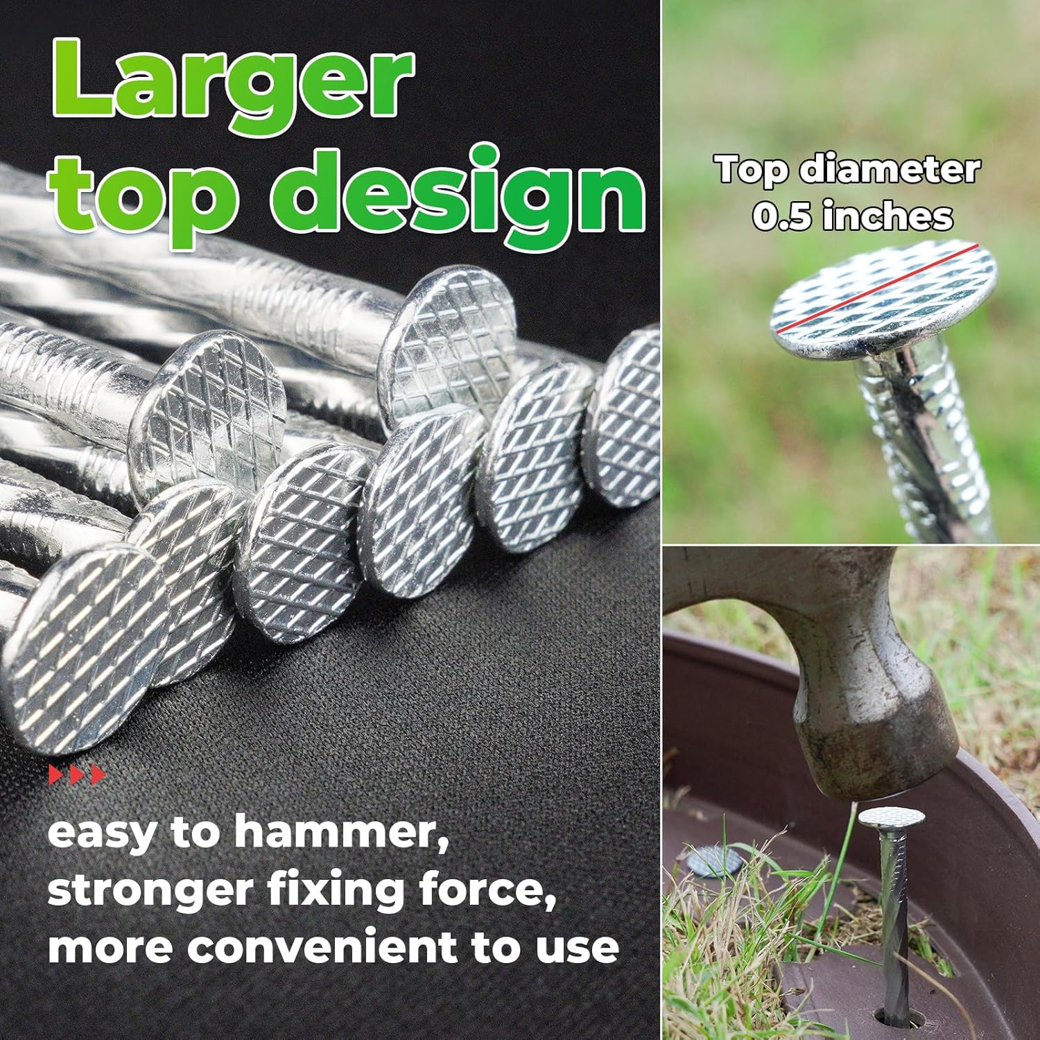 • 【Multipurpose】 Heavy duty garden stakes for fixing landscape edging, weed barrier fabrics, artificial lawns, tents, traps, carpets; It can also be used for carpentry, housing construction, etc