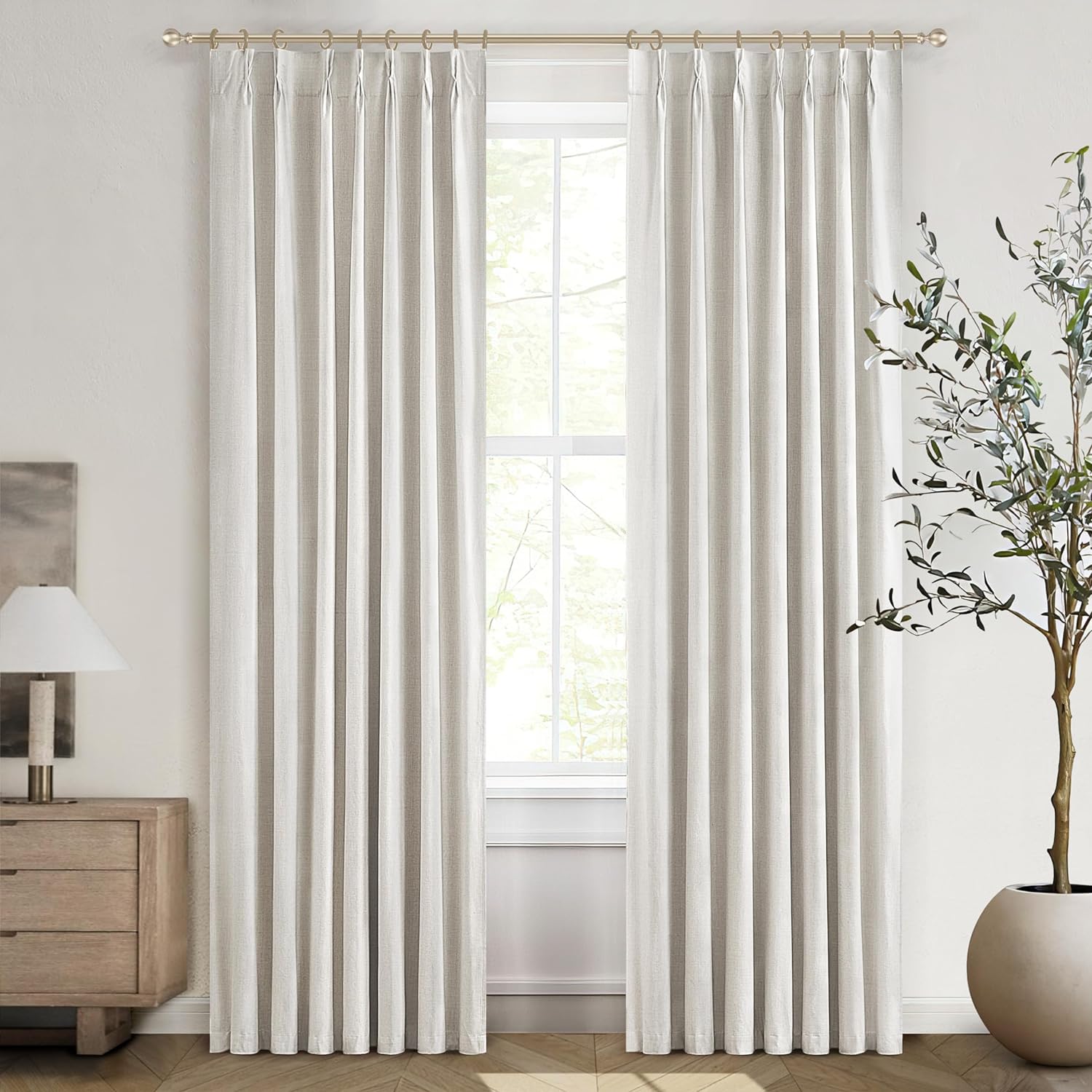 • Pinch Pleats Design:Each panel has 7 pleats.linen draperies are crafted from blended fabric(30%linen,70%polyester),drapes well and not easy-wrinkle.Suitable for various styles:modern,farmhouse,boho,neutral,bedroom,living room,nursery,sliding door,etc.