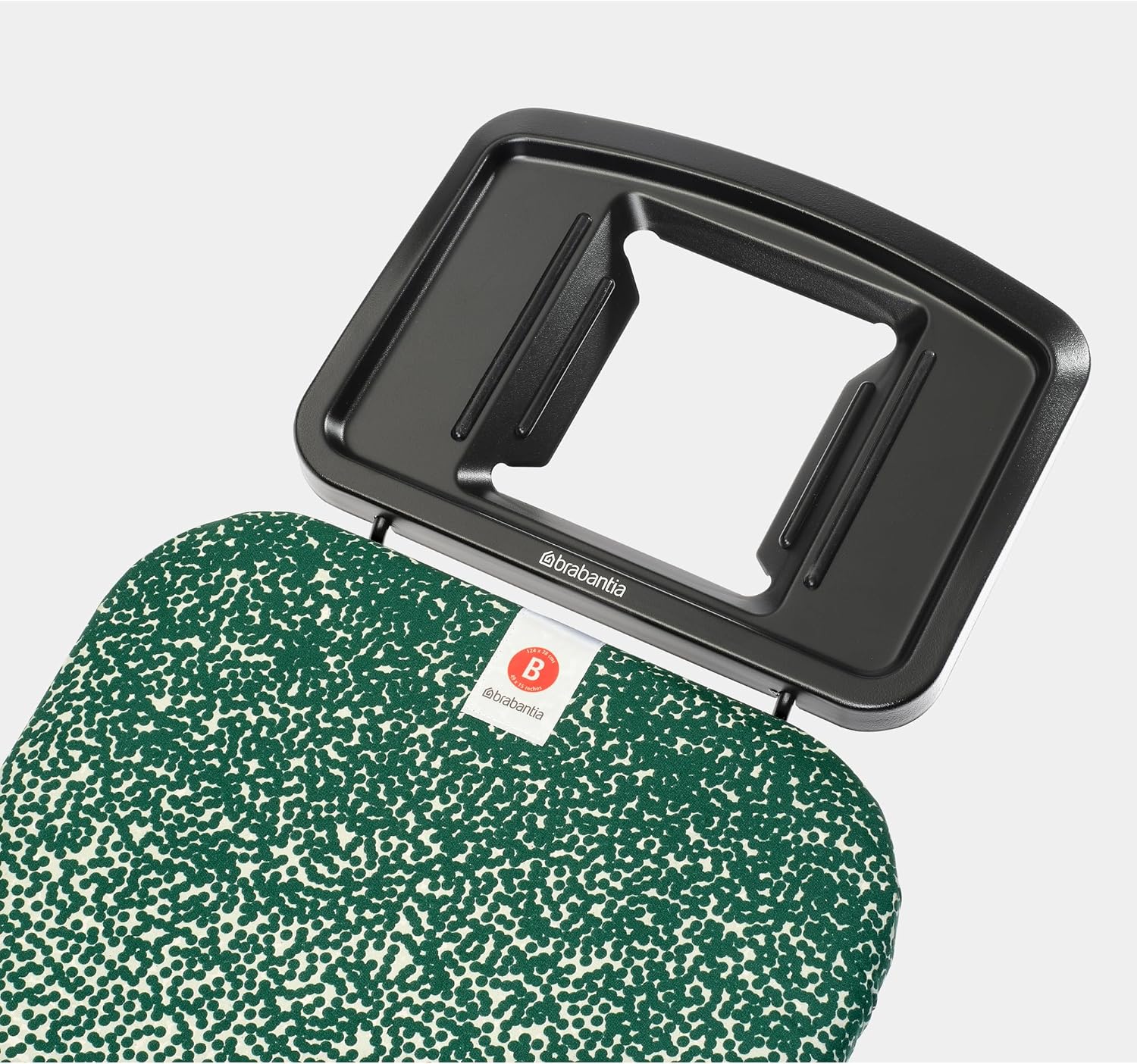 • Detailed Specifications: The Brabantia Ironing Board B (48.8 x 15 inches) adjusts from 27.2 to 37.8 inches, with a 0.87-inch steel frame. Weighing 14.8 lbs, it fits irons up to 5.9 inches.