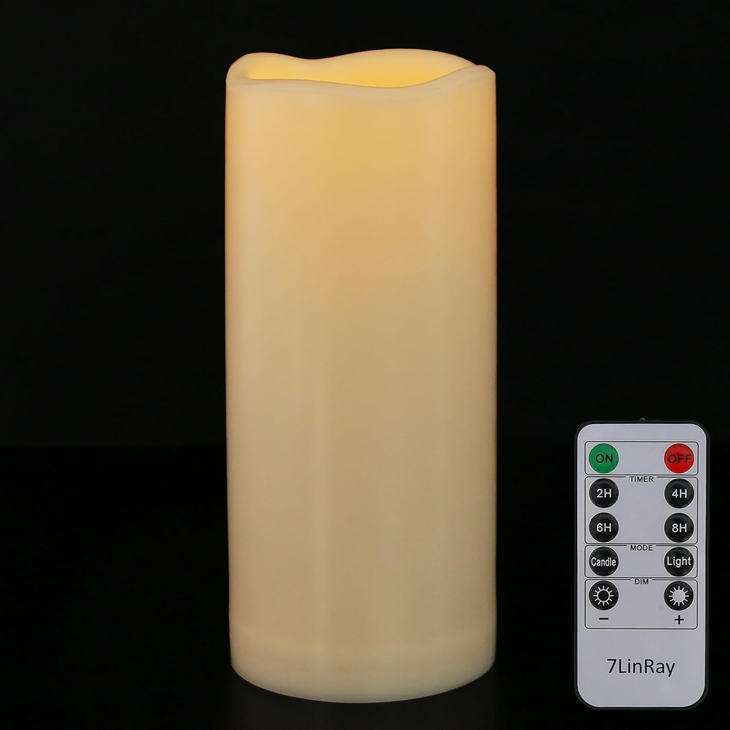 3" x 7" Outdoor Flameless Candles with Remote and Timer, Battery Operated Flickering LED Flameless Pillar Candles for Wedding Home Decoration, Ivory, Plastic, 1 Pack