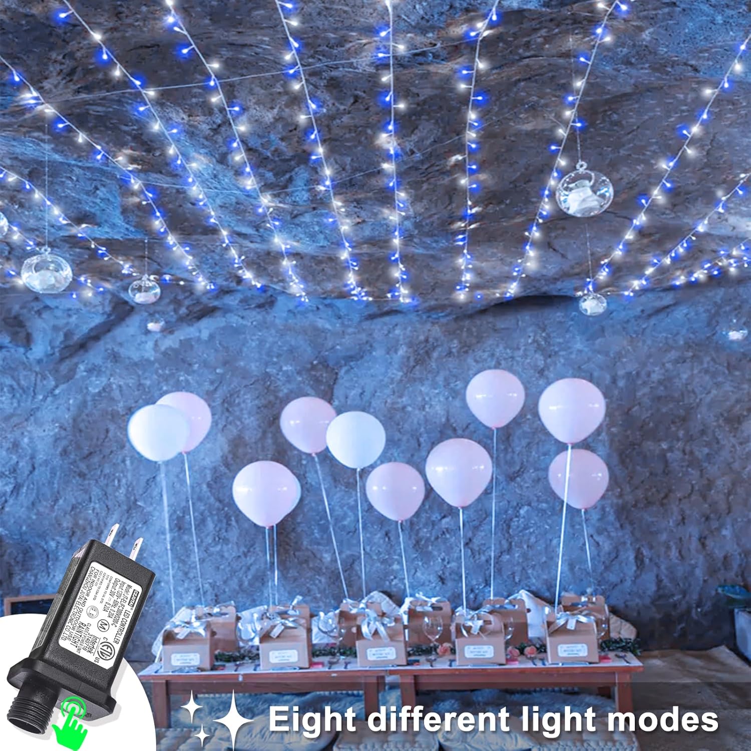 • Waterproof Blue and White Lights: The Christmas lights design with IP44 outdoor waterproof, can withstand wind, snow, rain and extreme weather. String lights are equipped with a UL certified 29V low-voltage plug ensures the safety. It's safe for family with kids or pets!