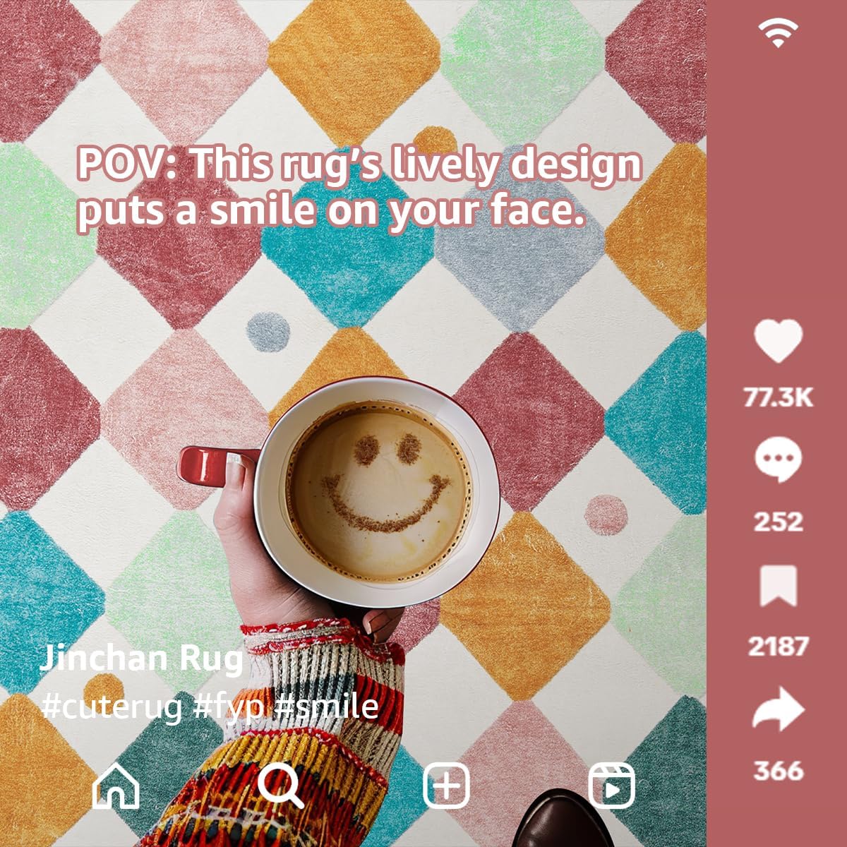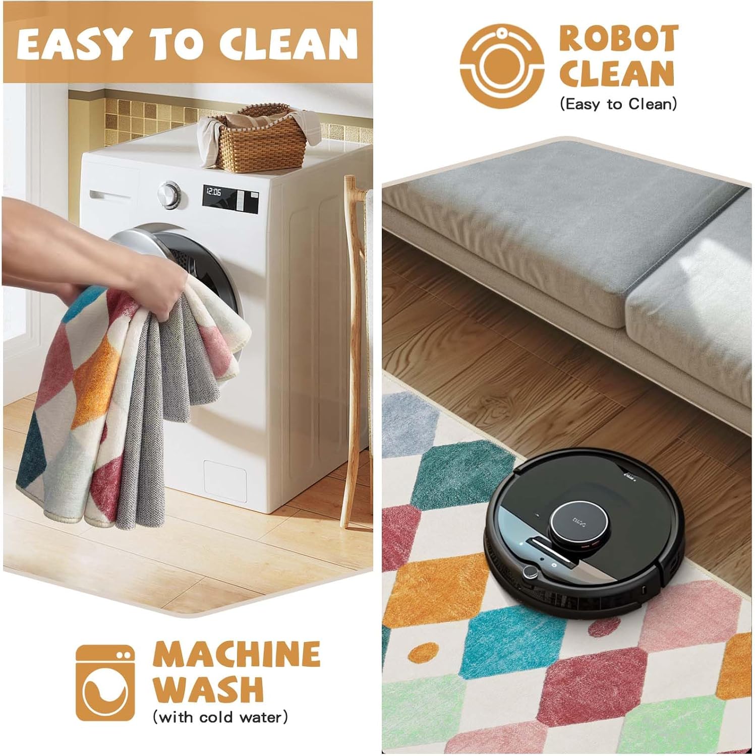 • Warm Vintage Colorful Design: Adorned with delightful diamond lattice splicing pattern against a soft cream bottom, this rug adds a playful charm to children's rooms and infuses vitality into adult spaces
