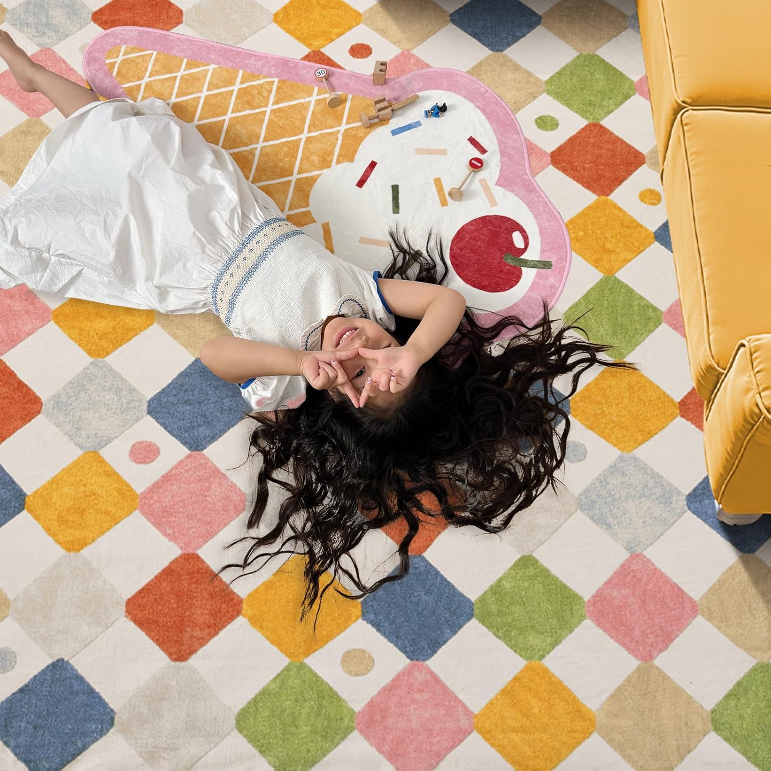 • Warm Vintage Colorful Design: Adorned with delightful diamond lattice splicing pattern against a soft cream bottom, this rug adds a playful charm to children's rooms and infuses vitality into adult spaces