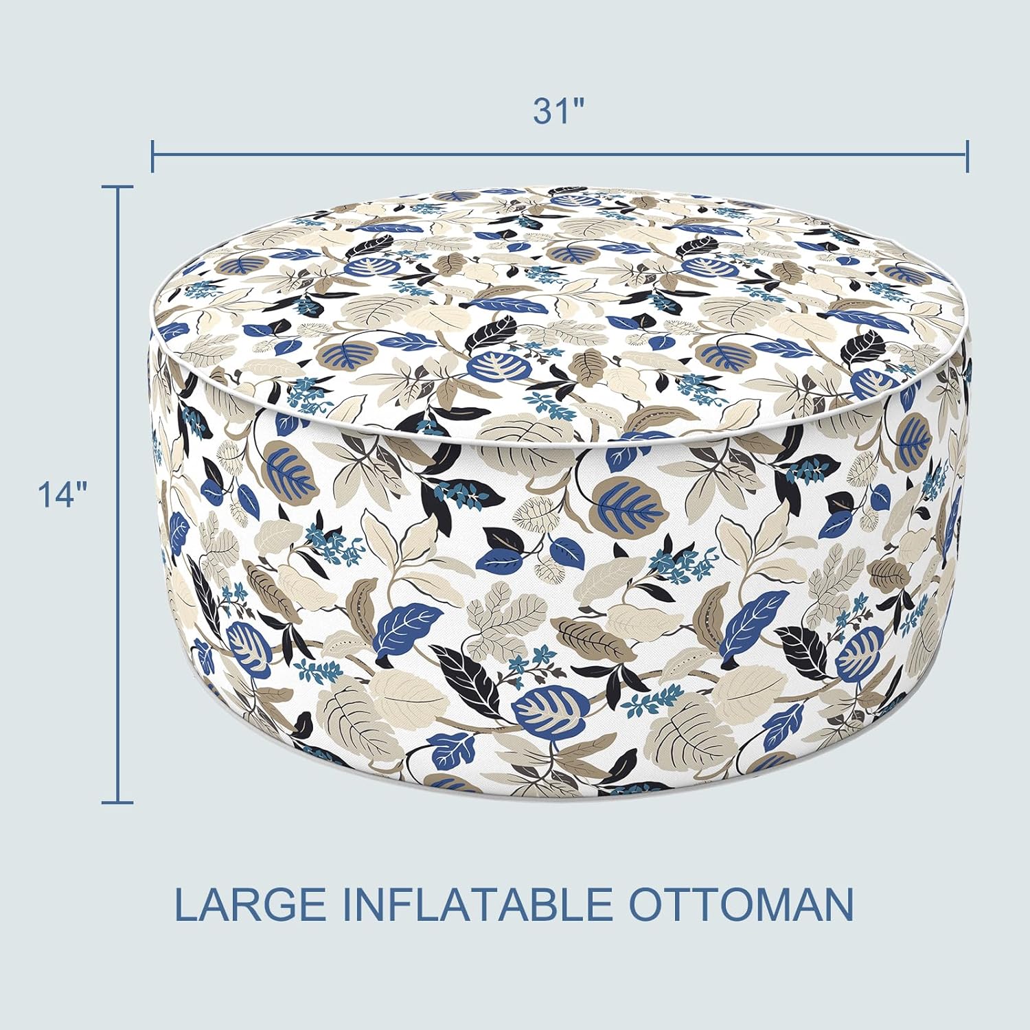 LVTXIII Indoor/Outdoor Inflatable Ottoman, D31 x H14 Inch Large Round Ottoman, All Weather Foot Rest Stool, Portable Footrest for Patio, Garden, Camping and Home - Breeze Leaves Beige