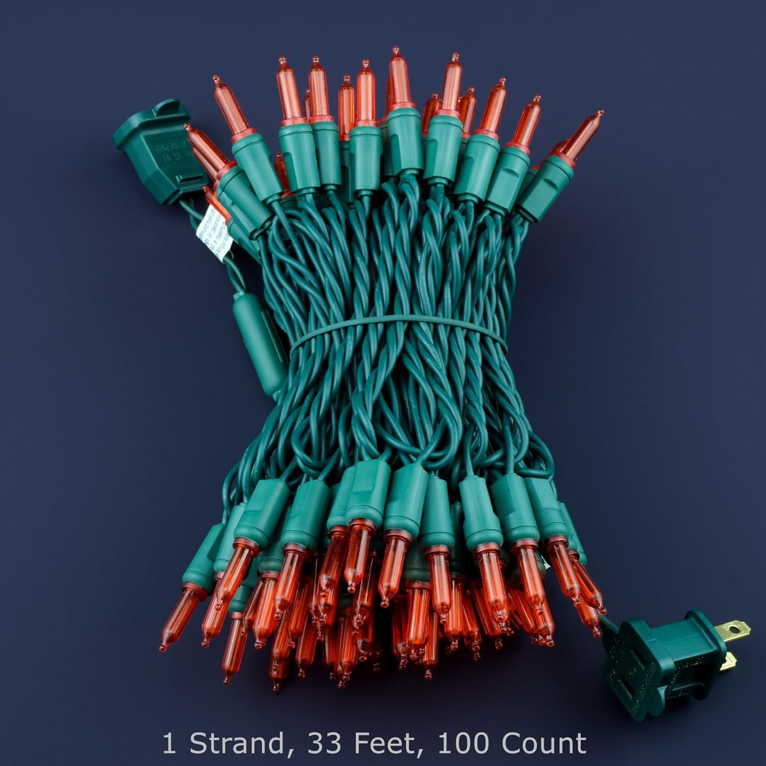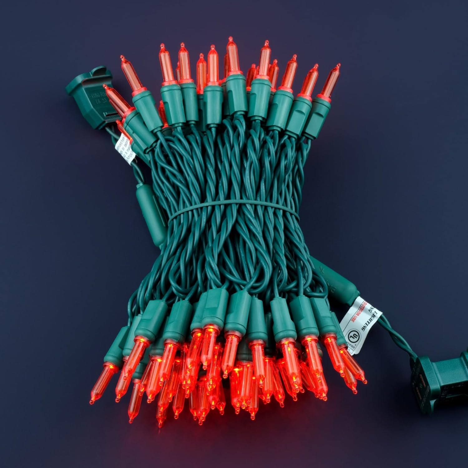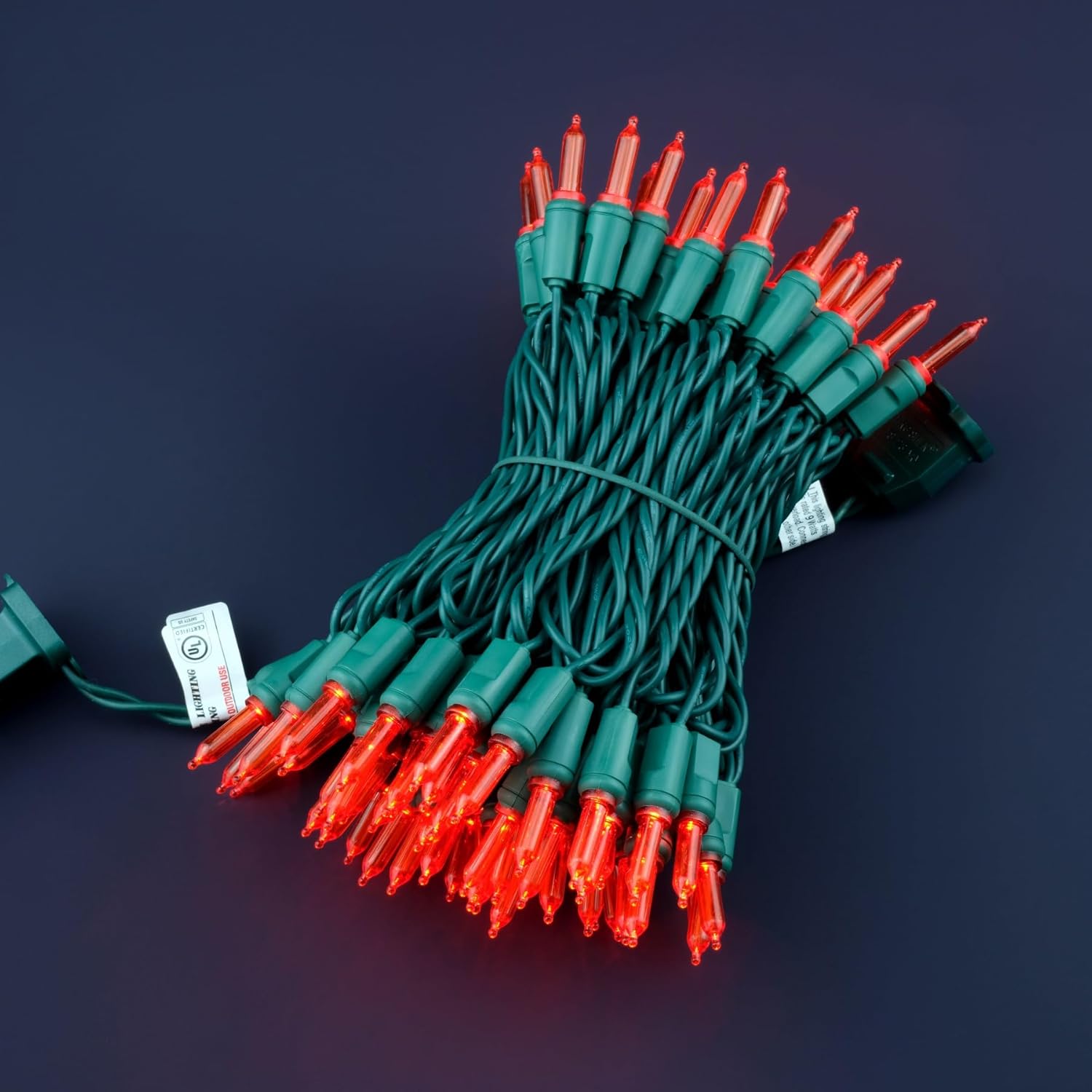 • SPECIFICATIONS ☀ Each pack contains 1 strands of one-piece string lights, total length 33 feet with 100 count red mini lights. 22 AWG green cord, 4" lead, 4" spacing, 4" tail.