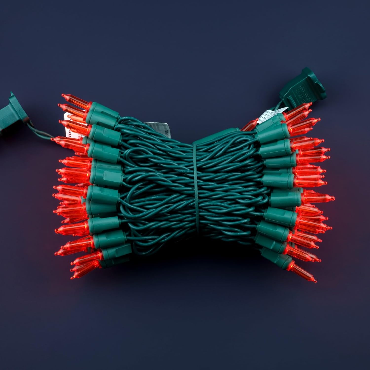 100 Red One-Piece LED Christmas Lights, 33 ft Green Cord High Waterproof UL Certified T5 Outdoor String Lights (Red)