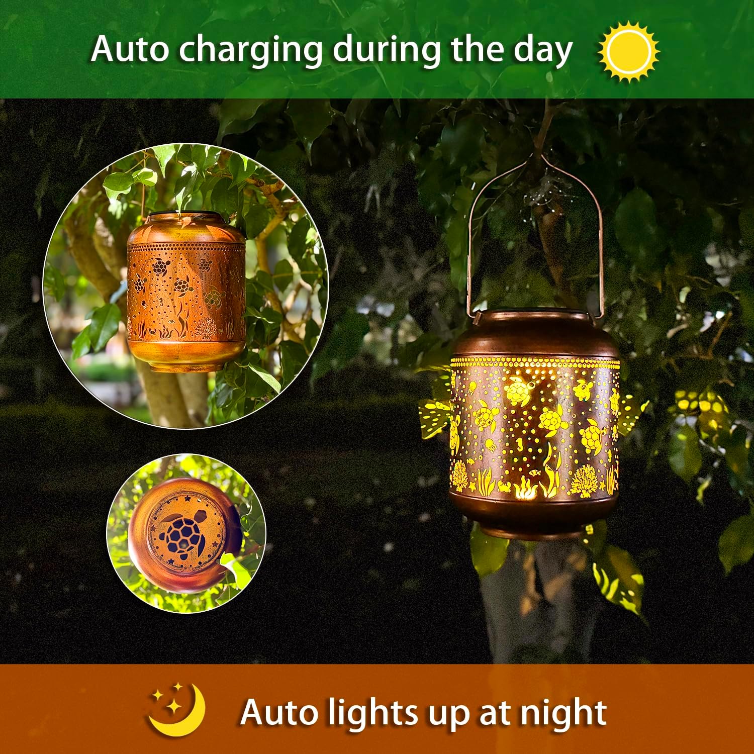 • 【Ideal Garden Gifts】Sea Turtle symbolize good luck,wisdom,love,among other good meanings.This Sea Turtle solar hanging lantern is perfect for Mother's Day,Father's Day,Thanksgiving,Christmas,Valentine's Day,birthdays,weddings,New Year's and housewarming gifts for mothers,fathers,wives,husbands,grandmothers,grandfathers,lovers,daughters,sons,friends or yourself.Excellent choice for garden decoration!