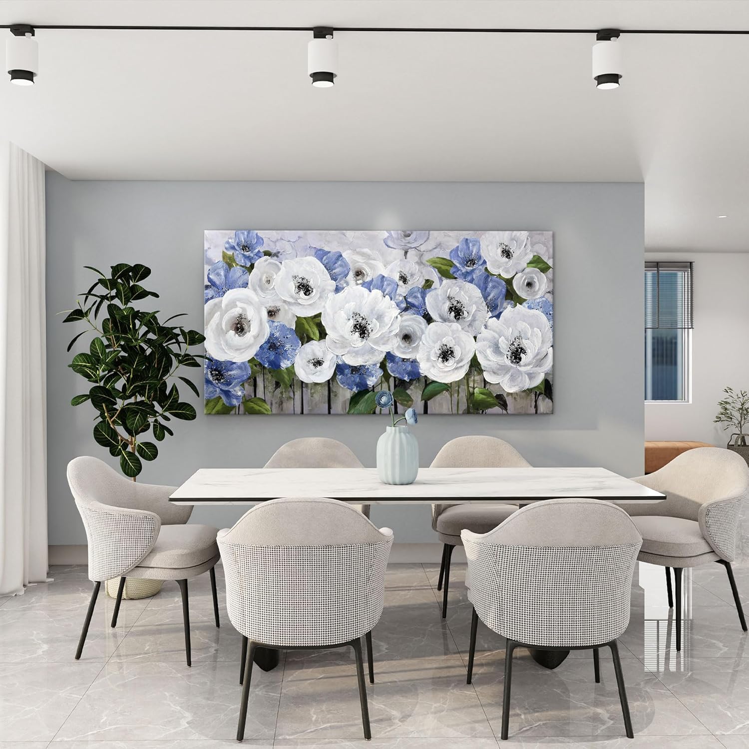 • Blue Wall Art:Our floral wall art is made of high-quality canvas, which is thick, sturdy, and not easy to fade. The vivid colors and clear lines make the flower paintings look more realistic and beautiful.