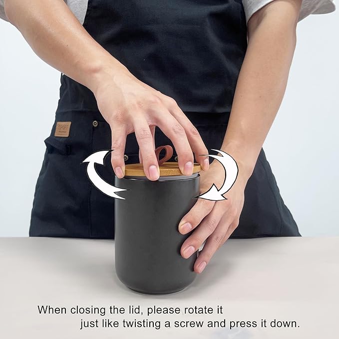 • Easy-to-Use Design - Screw the lid on tightly like a screw to remove air and improve sealing. Wide mouth allows for easy access to contents. The smooth glaze finish simplifies cleaning, and the ceramic jars are dishwasher safe for hassle-free maintenance. Hand washing is recommended for the bamboo lids.