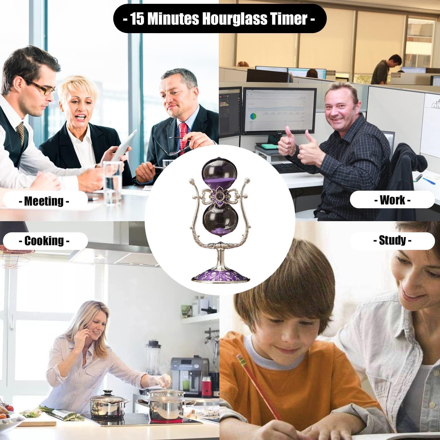 Sanduhr 15 Minuten,Metal Vintage Hourglass,Hour Glass,Hourglass Decor,for Home Decoration Office Desk Wedding Party Decor Kitchen Timer (Violetter Sand)