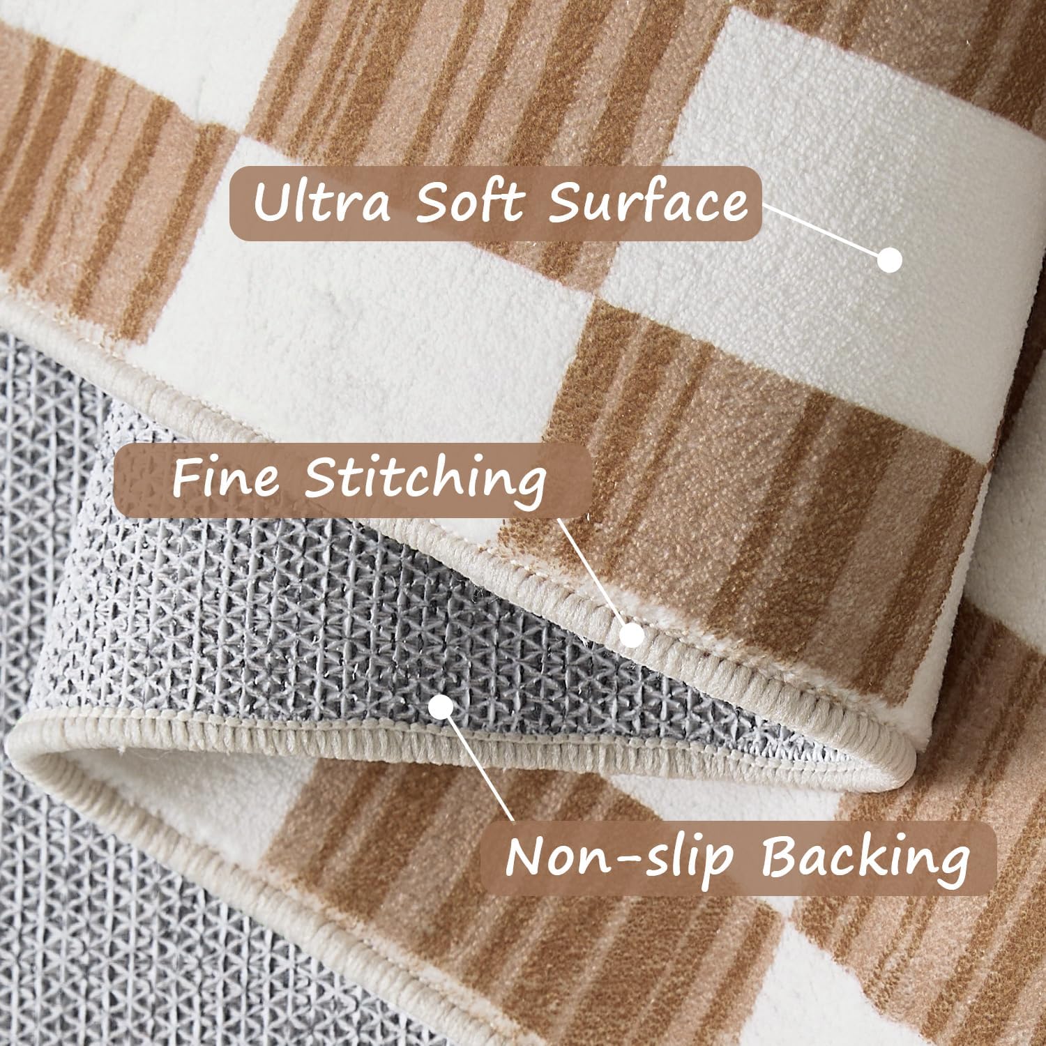 jinchan 2x3 Kids Area Rug Washable Indoor Entryway Doormat Modern Checkered Geometric Lattice Small Rug Non Slip Soft Carpet for Nursery Room Bedroom Bathroom Home Brown