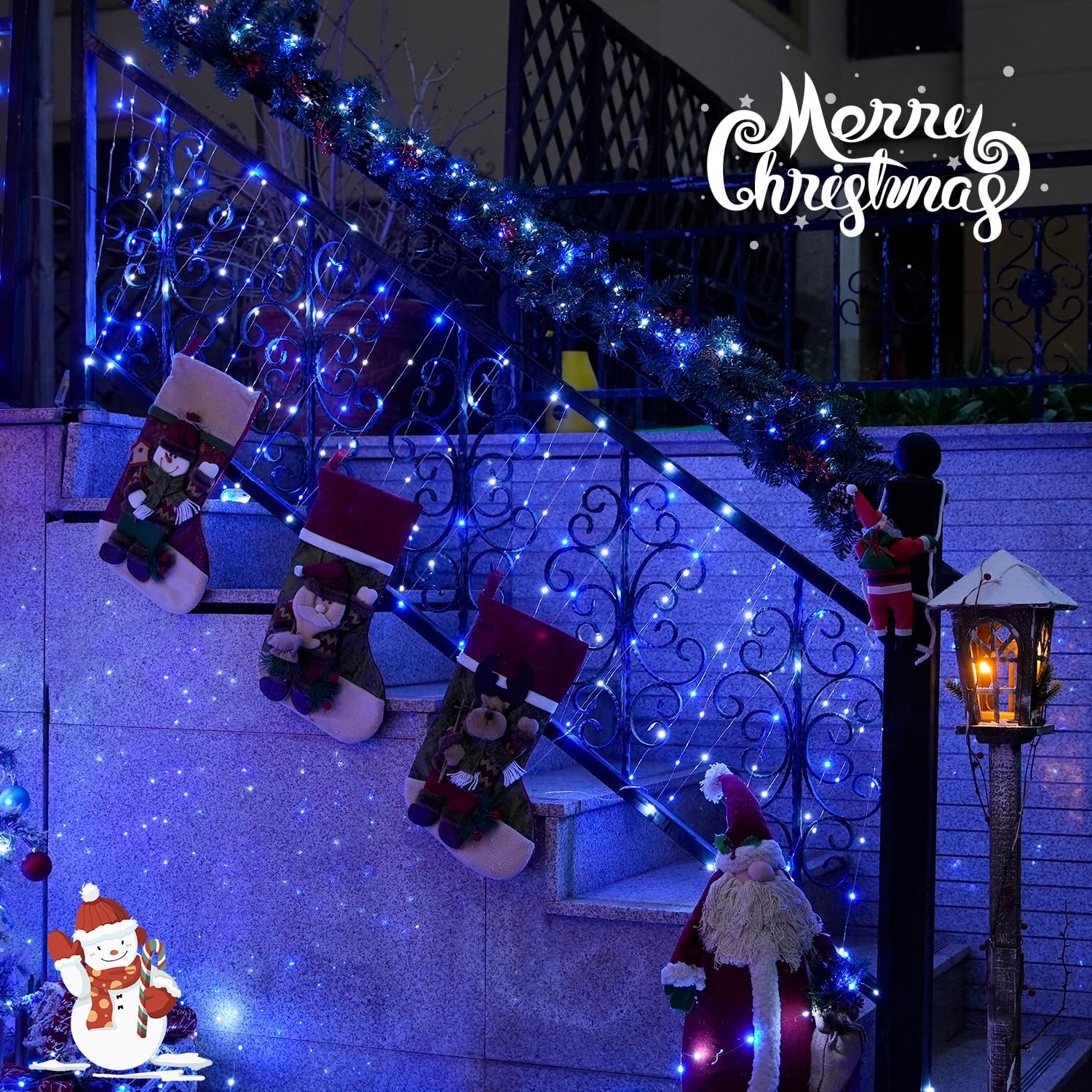 • 【8 Impressive Lighting Modes】our blue and white Christmas lights with 8 different modes (steady/flash/smooth/Steady-on, etc), can create vibrant Christmas atmospheres. They can be Christmas gifts for your family. Lighten your gift and brighten up your family and friendship. The solar Christmas fairy lights were just icing on the cake.