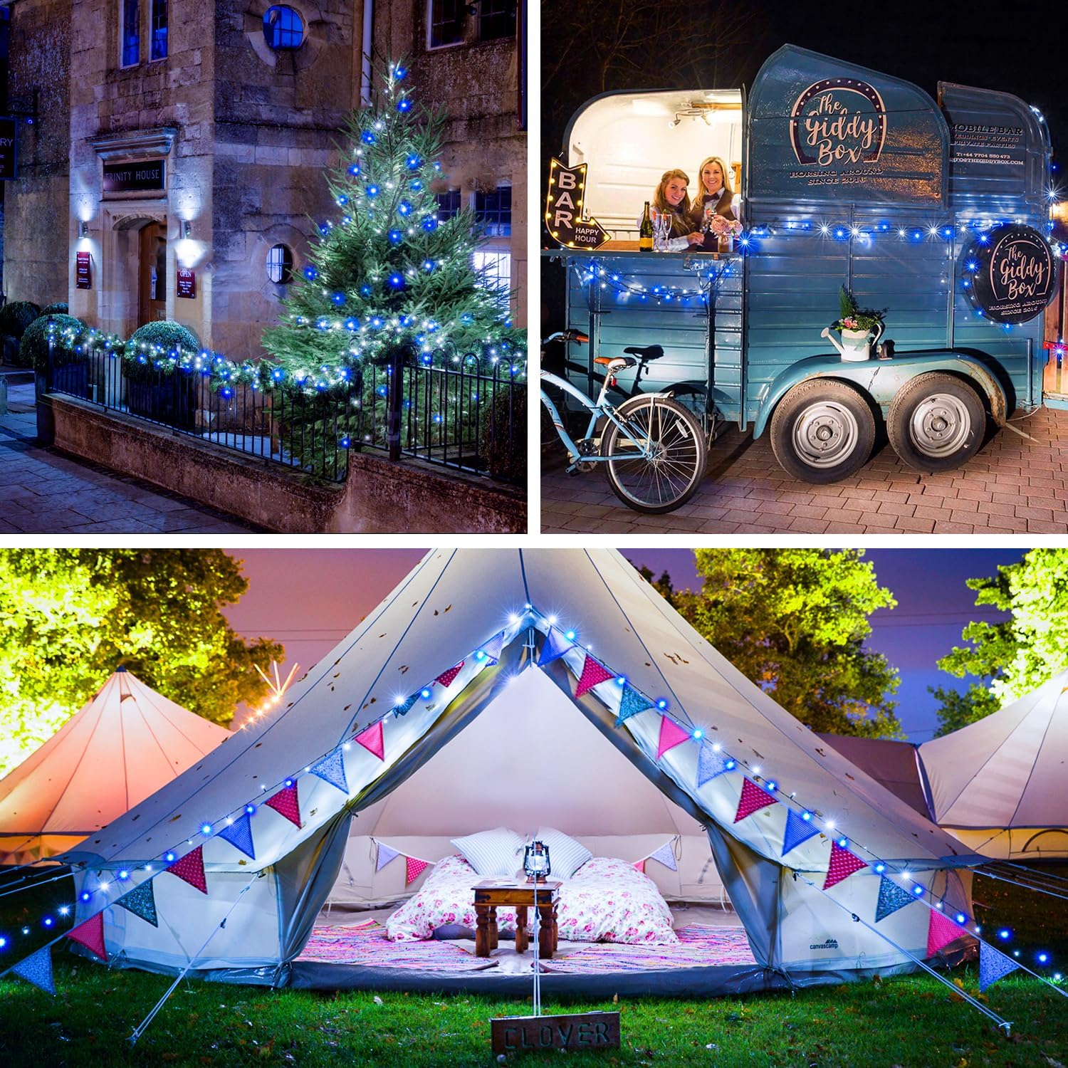 • 【Waterproof and Safety】The blue and white lights outdoor can withstand various weather (IP44), including heavy rain and snow, and are very suitable for indoor and outdoor decoration(Do not soak). No heat(The insulated copper wire keeps the lights at a low temperature so they are safe to touch after many hours of use), no radiation, low consumption, high safety.