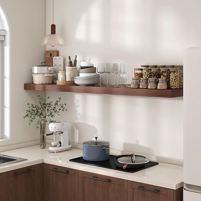 • DEEPER & THICKER SHELF- Our floating shelves measure 72W x 11.6D x 2H, deeper and thicker than usual wall shelves, which create more storage and display space for your home