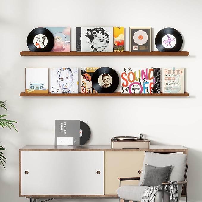 • Picture Ledge Shelves: The ledge in front of the wall shelves could prevent your precious items from falling off. And we handcraft a shallow groove on each book shelf to protect your items from sliding forward. Each floating shelf is 5 inches in depth with a 1.25 inches lip, you can put photos, pictures, DVD players, videos, books, toys, and some other knickknack on this beautiful display wooden shelf