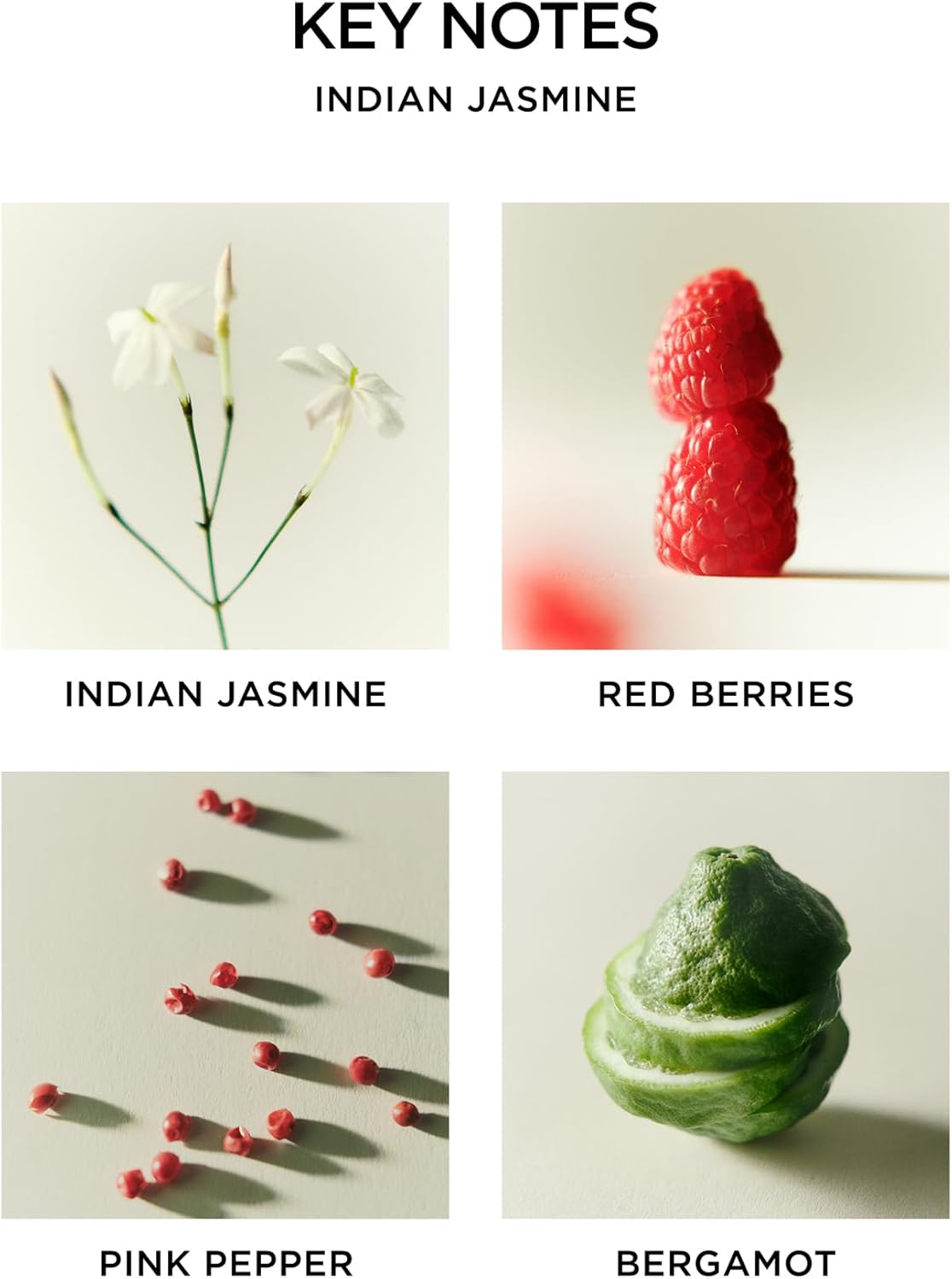 • CLASSIC FLORAL - Immerse yourself in the lush jasmine fields of India with an intense jasmine absolute surrounded by red berries, sparkling bergamot, and spicy pink pepper.