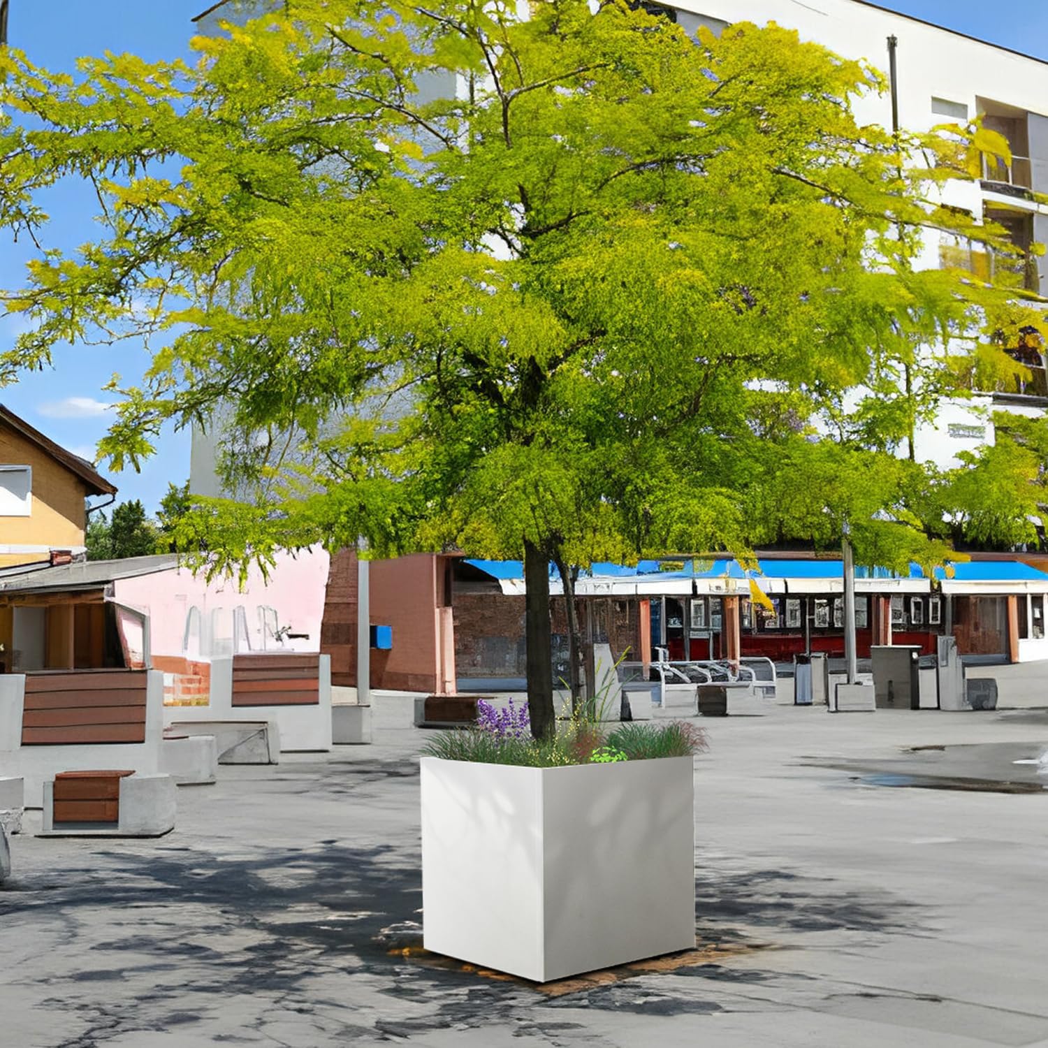 White Steel Planter Square Outdoor Planters Galvanized Steel Planter Box Indoor Metal Large Planters Cube Heavy Duty Flower Pot 24 Inch Modern Commercial Residential for Trees Patio Deck Yard Garden