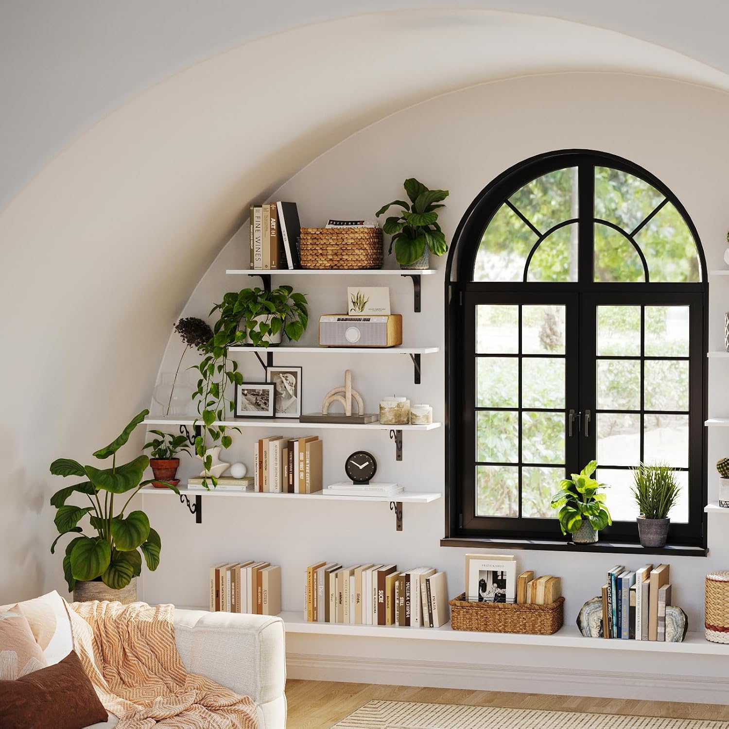 • 【Add Finishing Touch to Space】Mid-century design adds a retro-chic vibe to your home. Rusticity wood grain and exquisite S-shaped iron brackets flaunt visual interest and romance. They are full of character and enhance the texture of the space. A classy way to display your beloved decorations