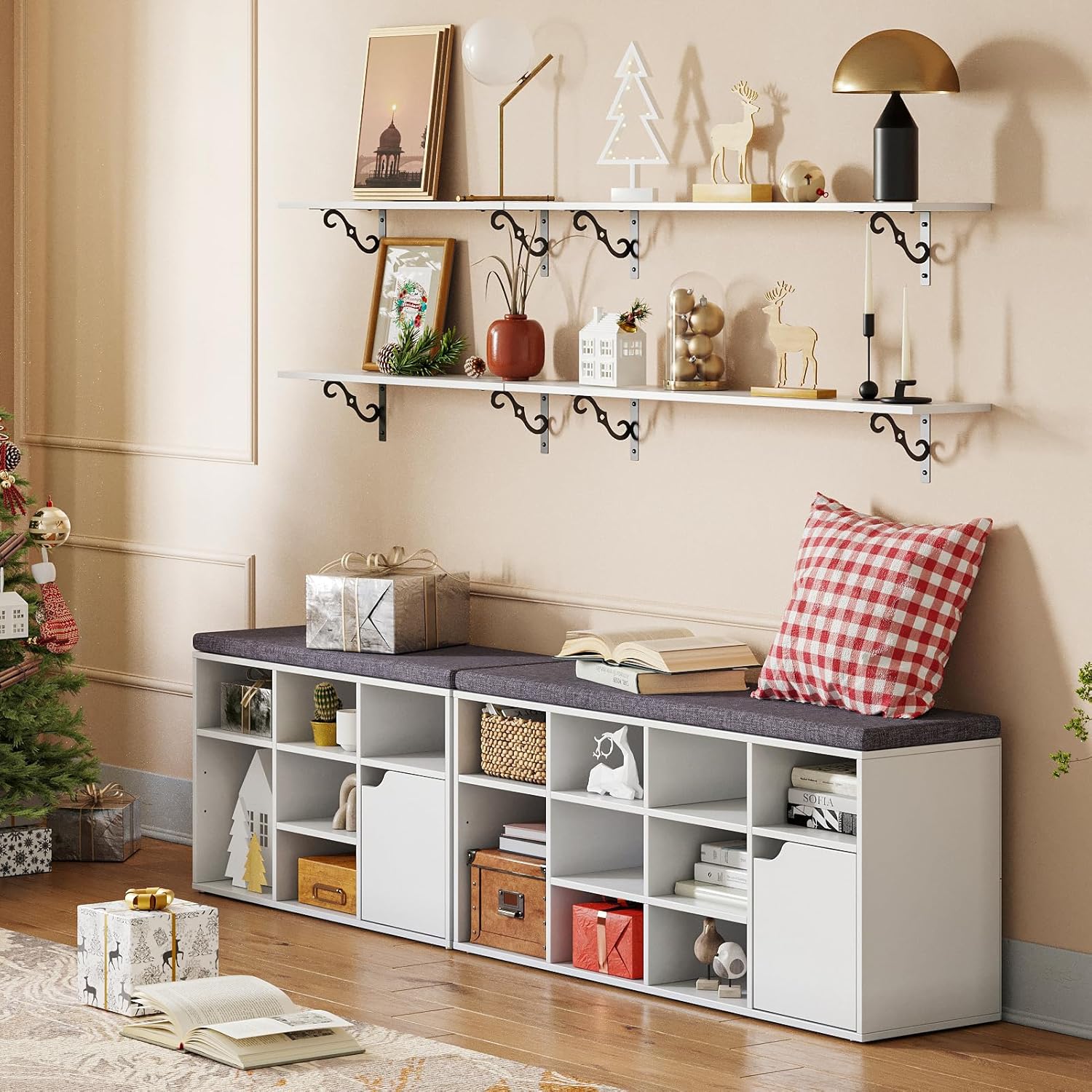 • 【Easy to Assemble】 Easy-to-read instructions give you a step-by-step guide. Accompanying tools and numbered accessories make installation quick and easy. Two types of expansion screws are provided for different wall materials. Snag-free design of the brackets make screwing in a breeze