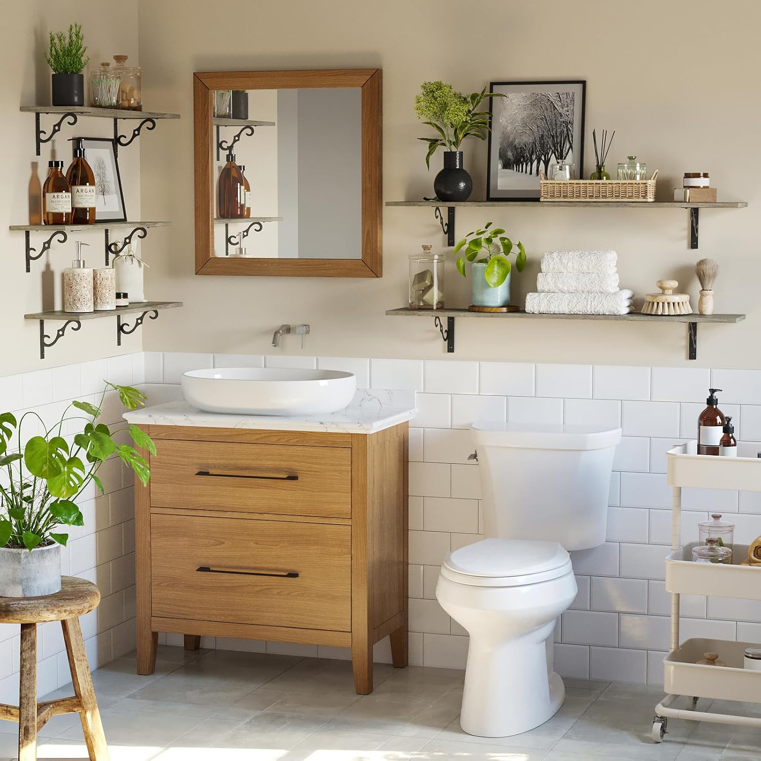 • 【Add Finishing Touch to Space】Mid-century design adds a retro-chic vibe to your home. Rusticity wood grain and exquisite S-shaped iron brackets flaunt visual interest and romance. They are full of character and enhance the texture of the space. A classy way to display your beloved decorations