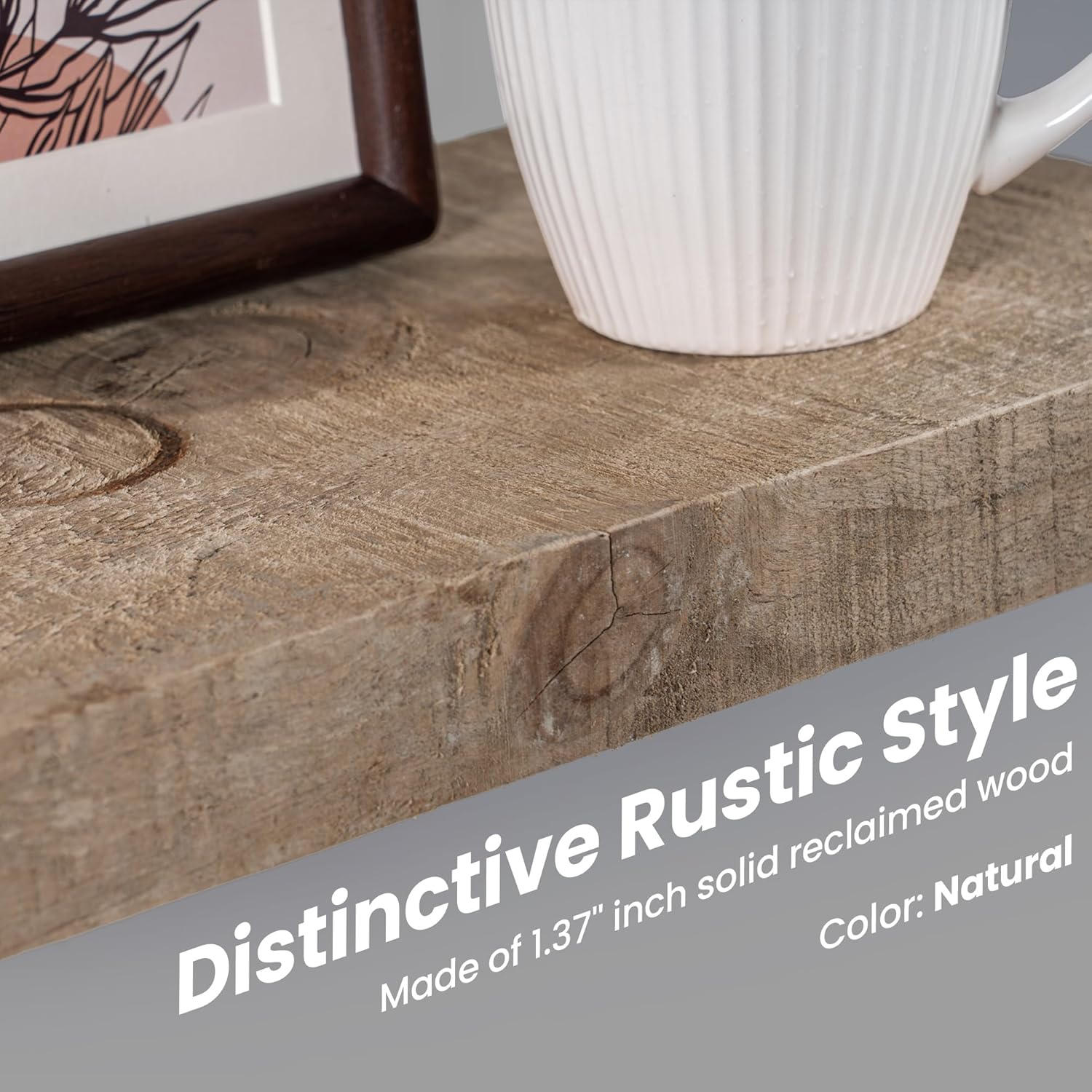 • Fast & Easy Installation - With our included detailed instructions, you can have your new long hanging floating shelves up and ready to use in just 10 minutes. Each package comes with a level, screws and anchors for installation, two hand-crafted reclaimed wood shelves, and two metal brackets. Our dedicated customer support team is always available to assist with any questions or issues you may have.