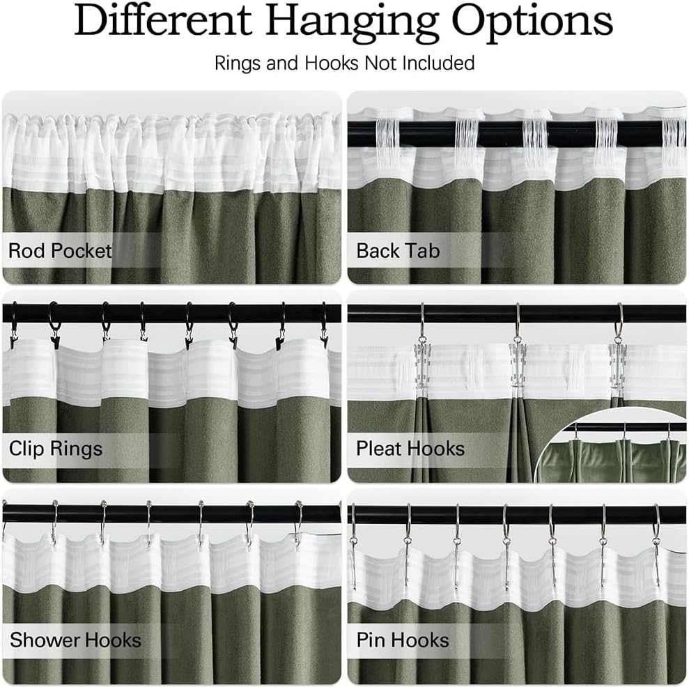 • HANGING OPTIONS: Each curtain panel has 3-in-1 top style design: rod pocket, back tab and pinch pleat. Back loop (2.3 inch) and rod pocket (3.1 inch) fit most standard rod. Curtains also can be hung with clip rings or curtain hooks. 3 ways to meet your various needs.