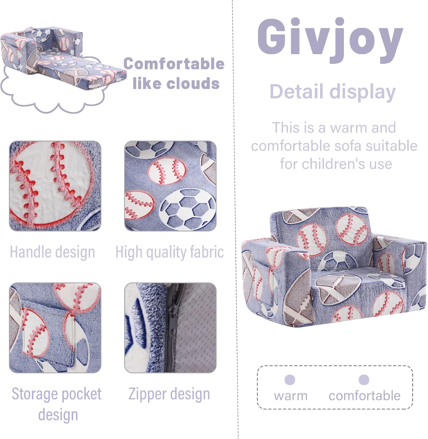 • 【Multifunctional 2-in-1 Design Unique Present for 18 months+ Boys and Girls】The 2-in-1 children's sofa couch is a wonderful present for all kids & toddlers on Birthdays, Christmas, or other occasions! Your child will find this small kids' couch a perfect spot for relaxing, reading, playing, or enjoying their favorite TV shows. Meanwhile, with both modern design and fashionable colors, this small couch can fit any room and add great vitality to your house.