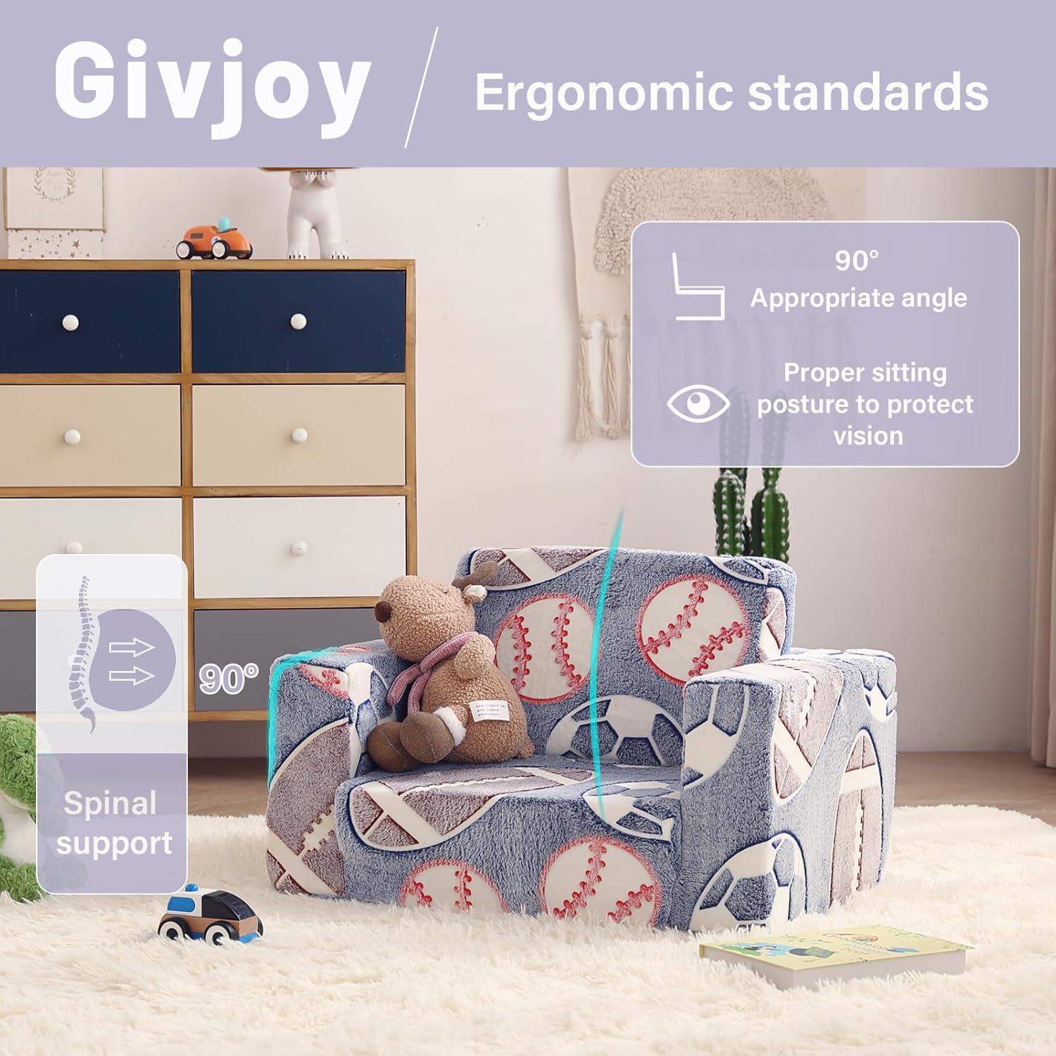 Toddler Chair Kids Couch, 2-in-1 Toddler Soft Sherpa Couch Fold Out Armchair Glow in The Dark with Removable Cover, Convertible Reading Chair Toddler Sofa for Kids, Football