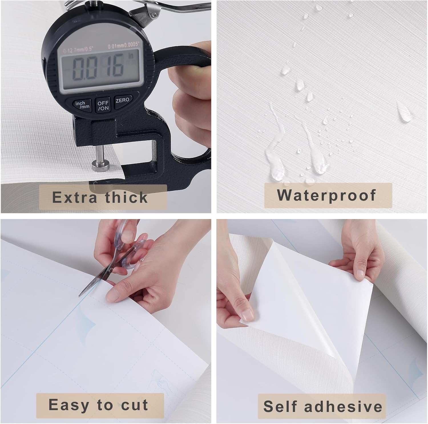 • FEATURES--Vinyl/pvc material. Thicker than normal wallpaper, full of real texture,self adhesive, easy to apply. Waterproof . Indoor use, ideal for most smooth flat surfaces such as bedroom,living room,cabinets,furniture,etc.