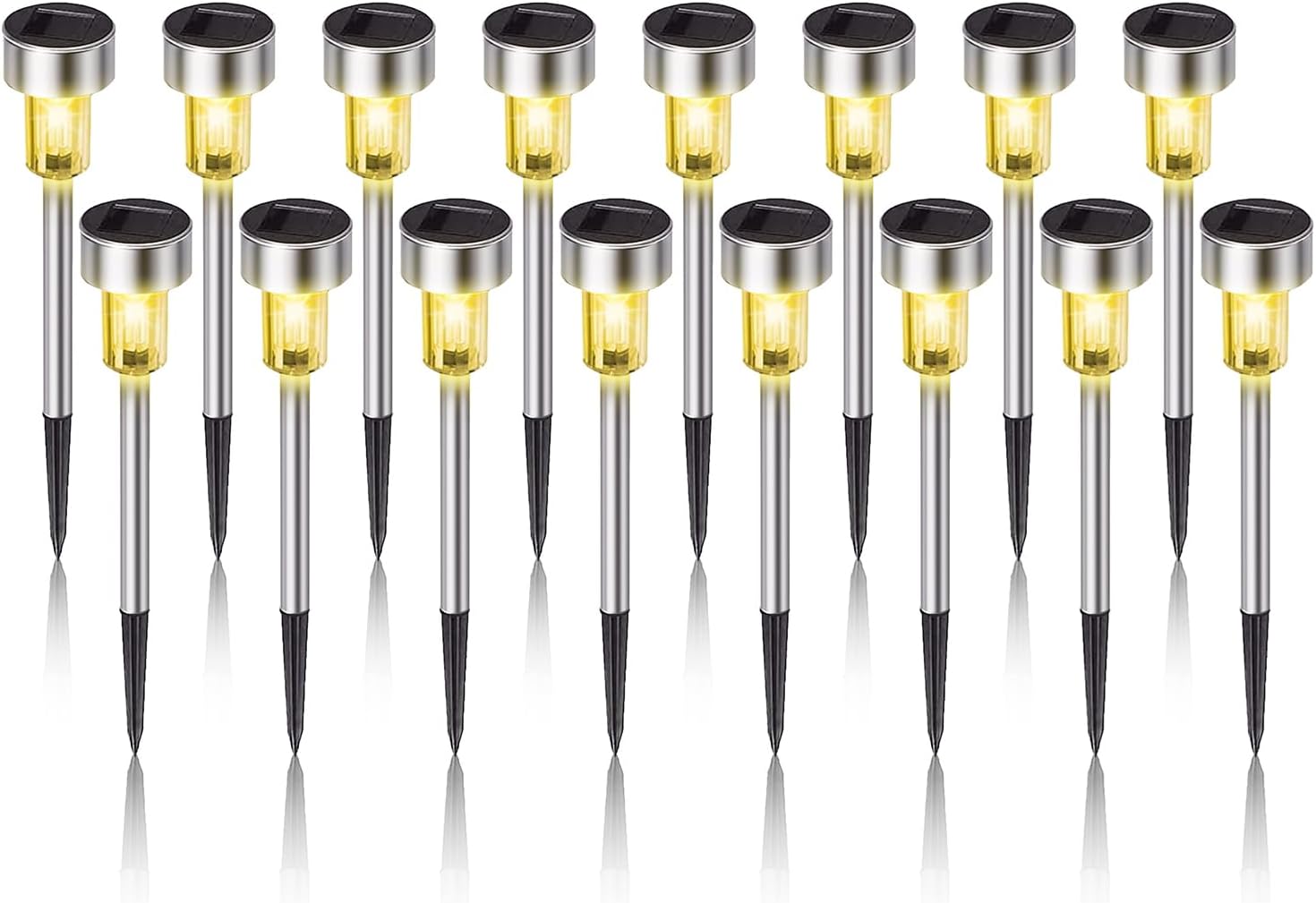Solar Lights Outdoor Waterproof, Stainless Steel LED Landscape Lighting, Solar Garden Lights Solar Powered, Outdoor Solar Lights for Yard, Pathway, Walkway, Patio, Lawn - 16 Pack (Warm White)