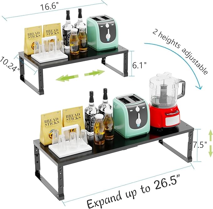 • ⭐【Expandable,Stackable】Compare with other spice rack, our products has expandable length (10.04" D x 16.6~26.5"W x 6.22~7.48"H)depending on how you want to arrange your space. You can use it alone or get more packs to stack them together to create more space.