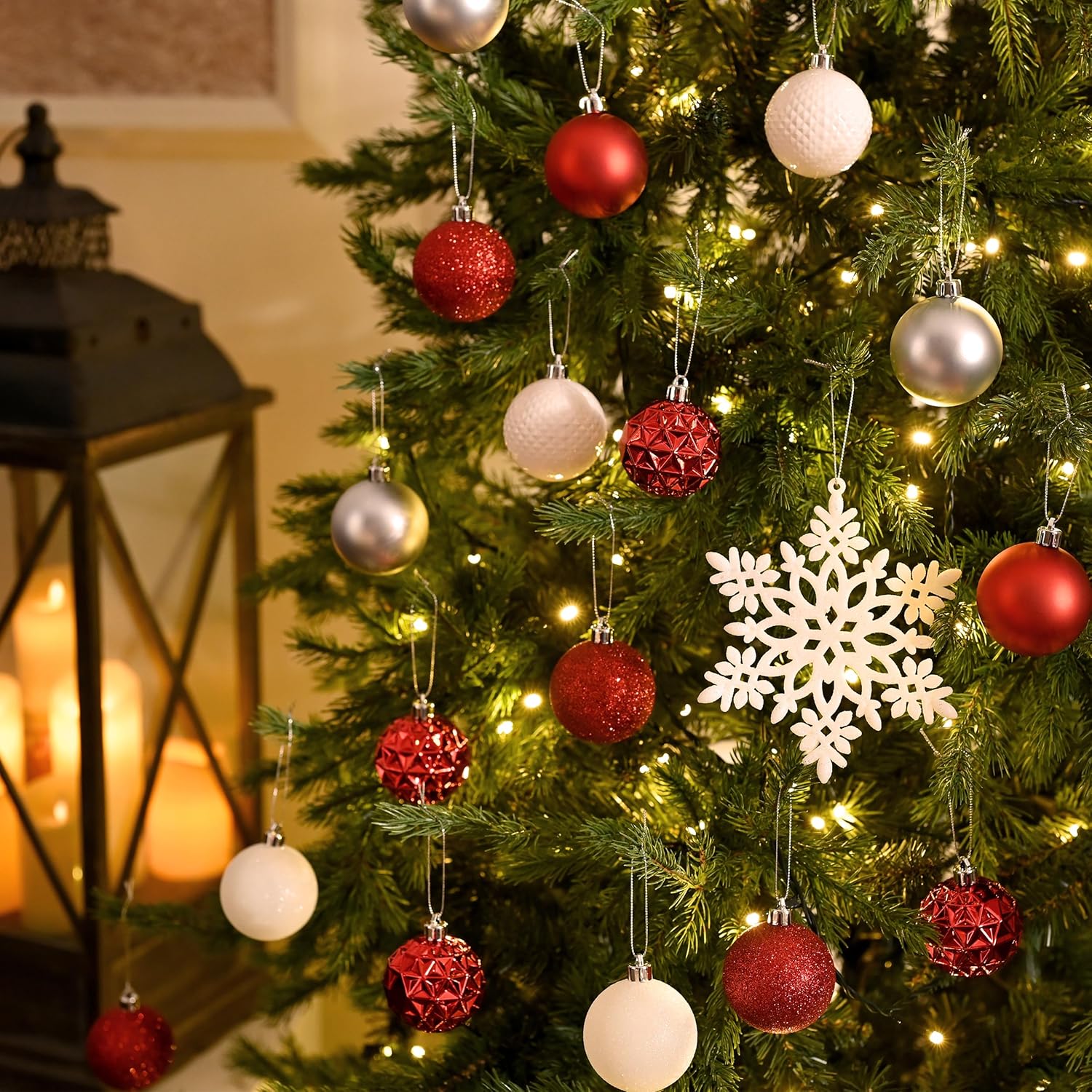 • 【Package and Size】This ornament ball set include 50pcs Christmas ornaments measuring 2.36 inches in diameter, featuring seamless connections for a polished look