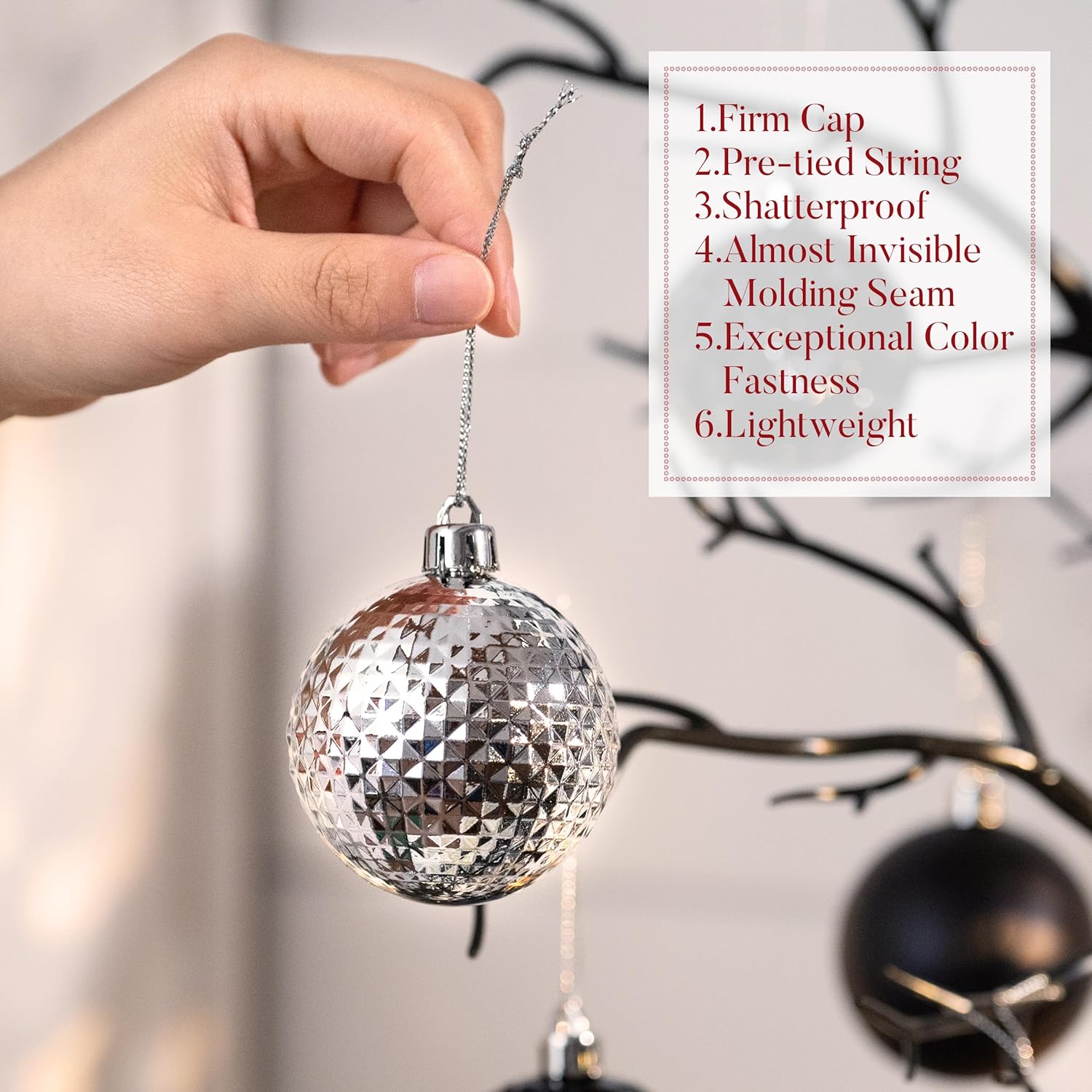• 【Shatterproof】These Christmas ornament are made of sufficient thickness plastic to prevent breakage. The ornament set remains intact even after falling from 2 meters high onto a hard floor. It is suitable for family