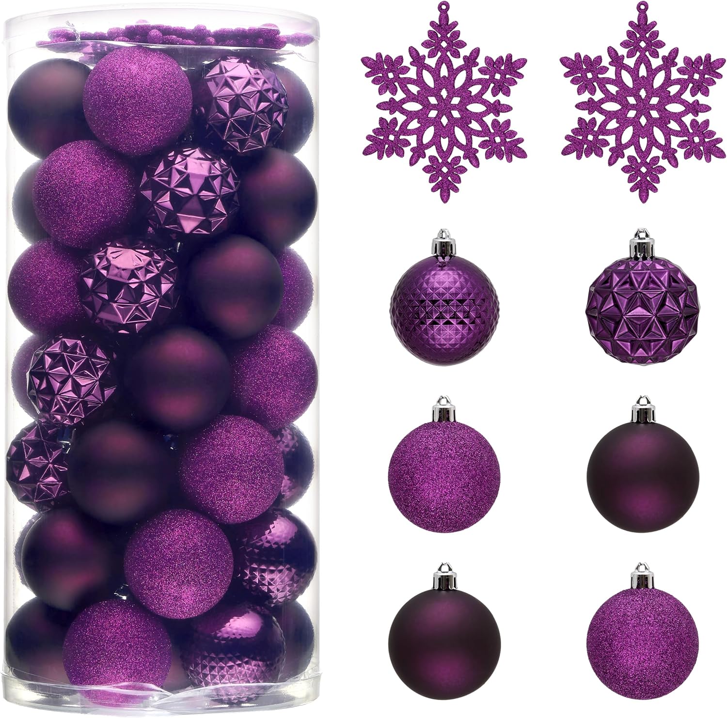 • 【Package and Size】This ornament ball set include 50pcs Christmas ornaments measuring 2.36 inches in diameter, featuring seamless connections for a polished look